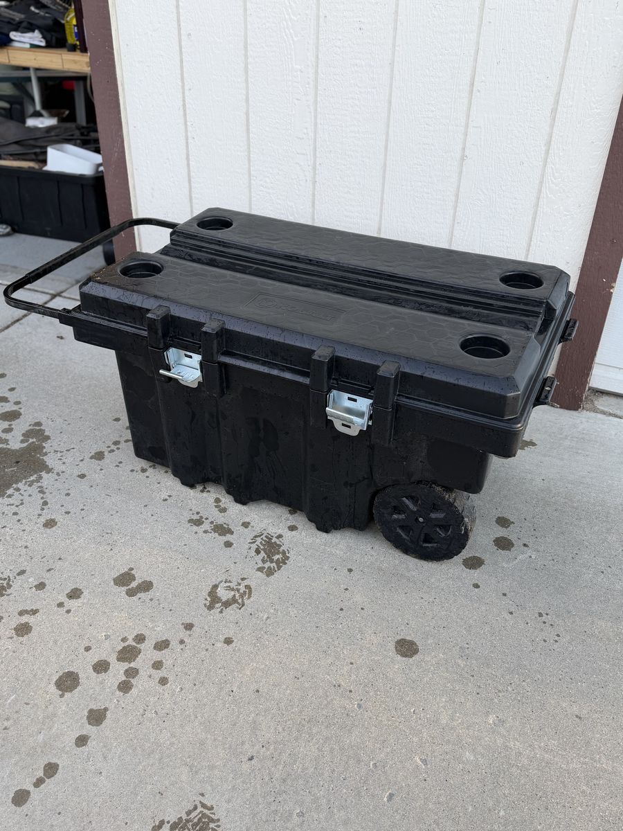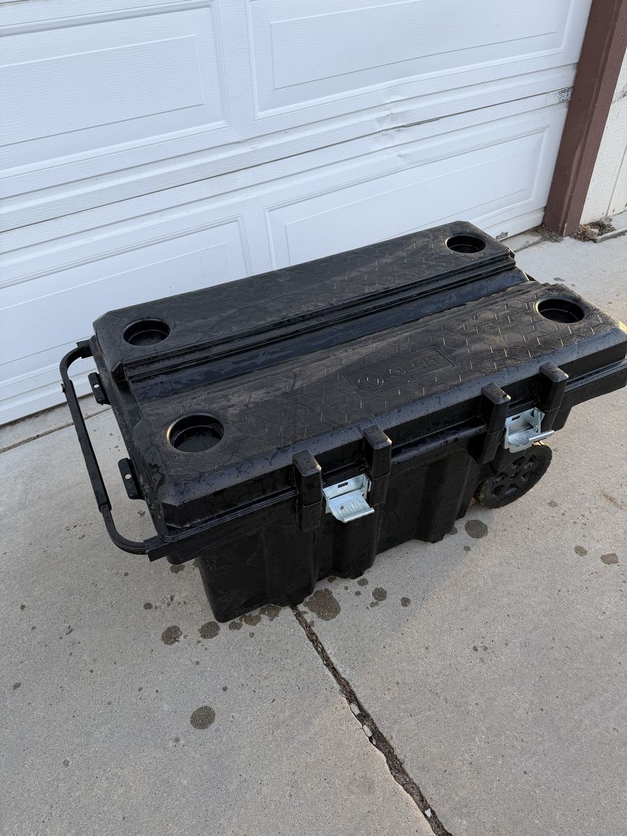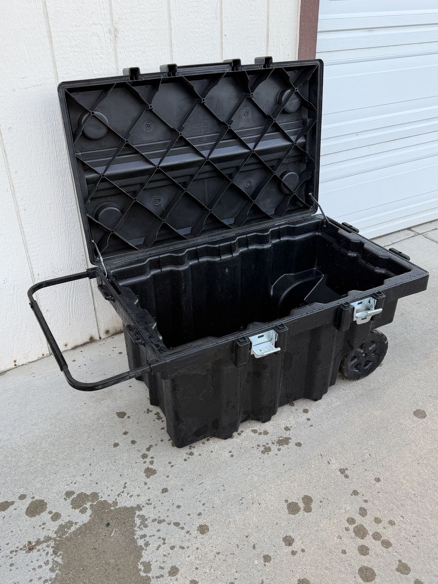 This 50 gallon rolling tool chest is made with spacious interior and rugged design for the toughest contractor. It comes with wheels for easy transport on and off the job site. It also has a place to use a pad-lock to lock up your valuable tools and equipment.