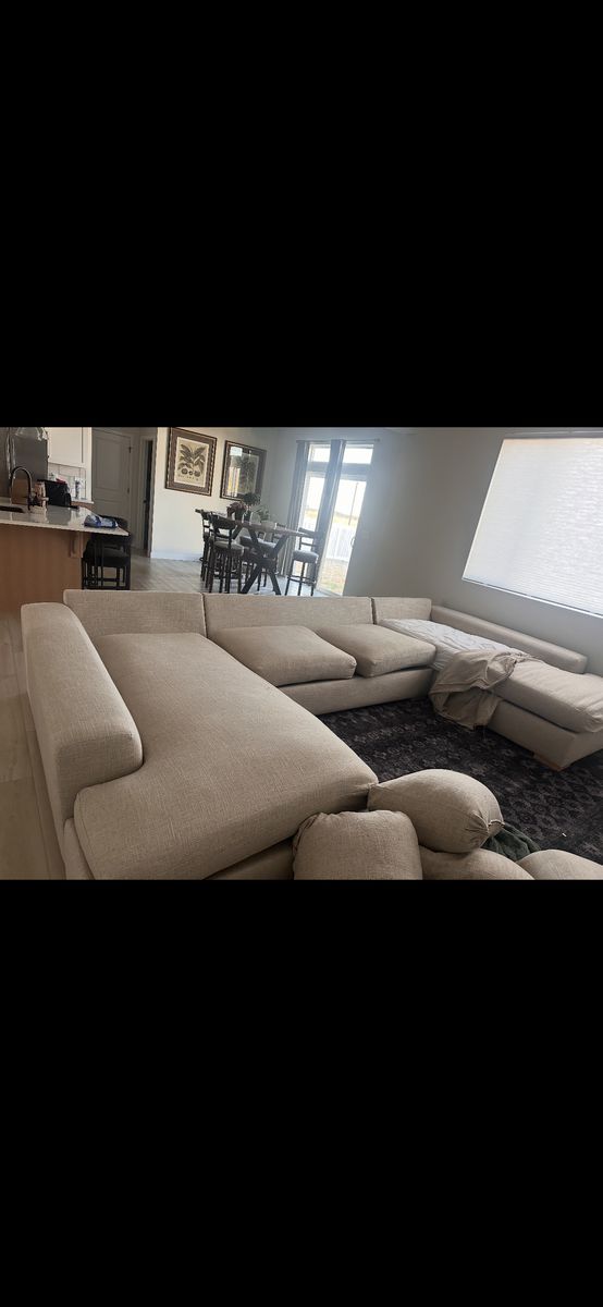 Great sectional for sale. A few months old, selling because we’re moving. No stains, has 3 rips on seams on one cushion. Originally paid $4k. Call or text me at (801) 420-3956 with any questions.