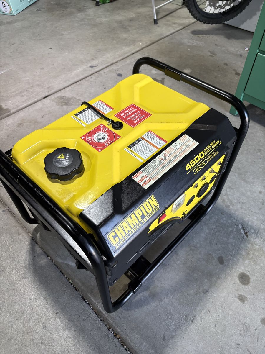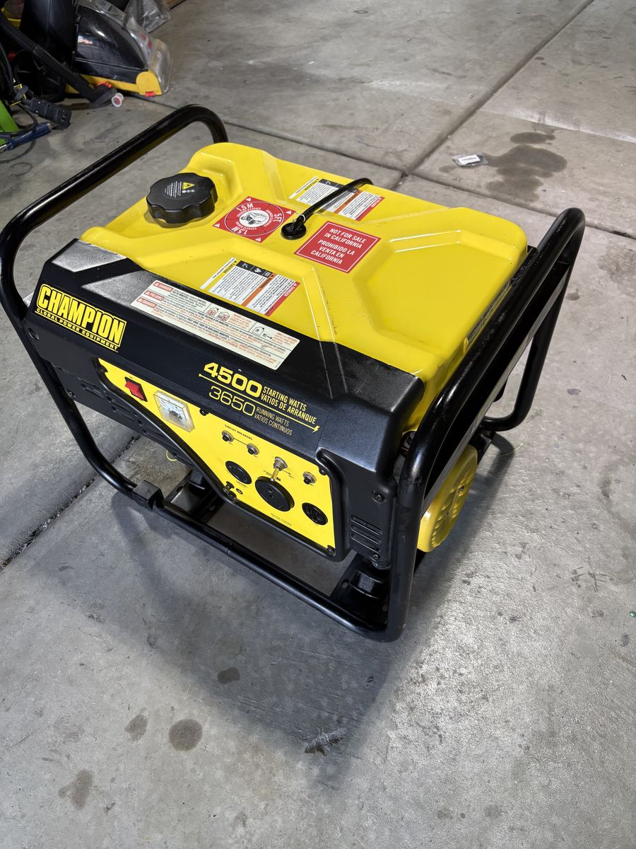 VenmoLike new champion generator. 4500 starting watts, 3650 running watts. Starts up and runs great without issue and is perfect for camp trailers. My parents recently purchased it for camping but are now getting divorced, therefor it’s being sold. $300 OBO.