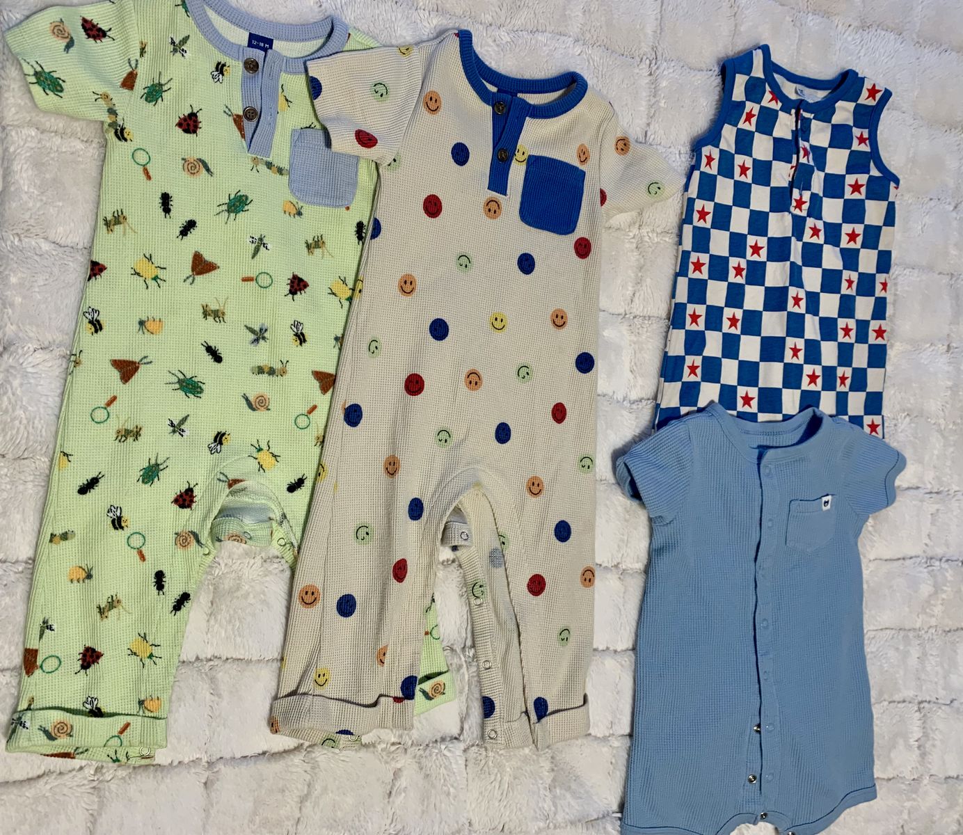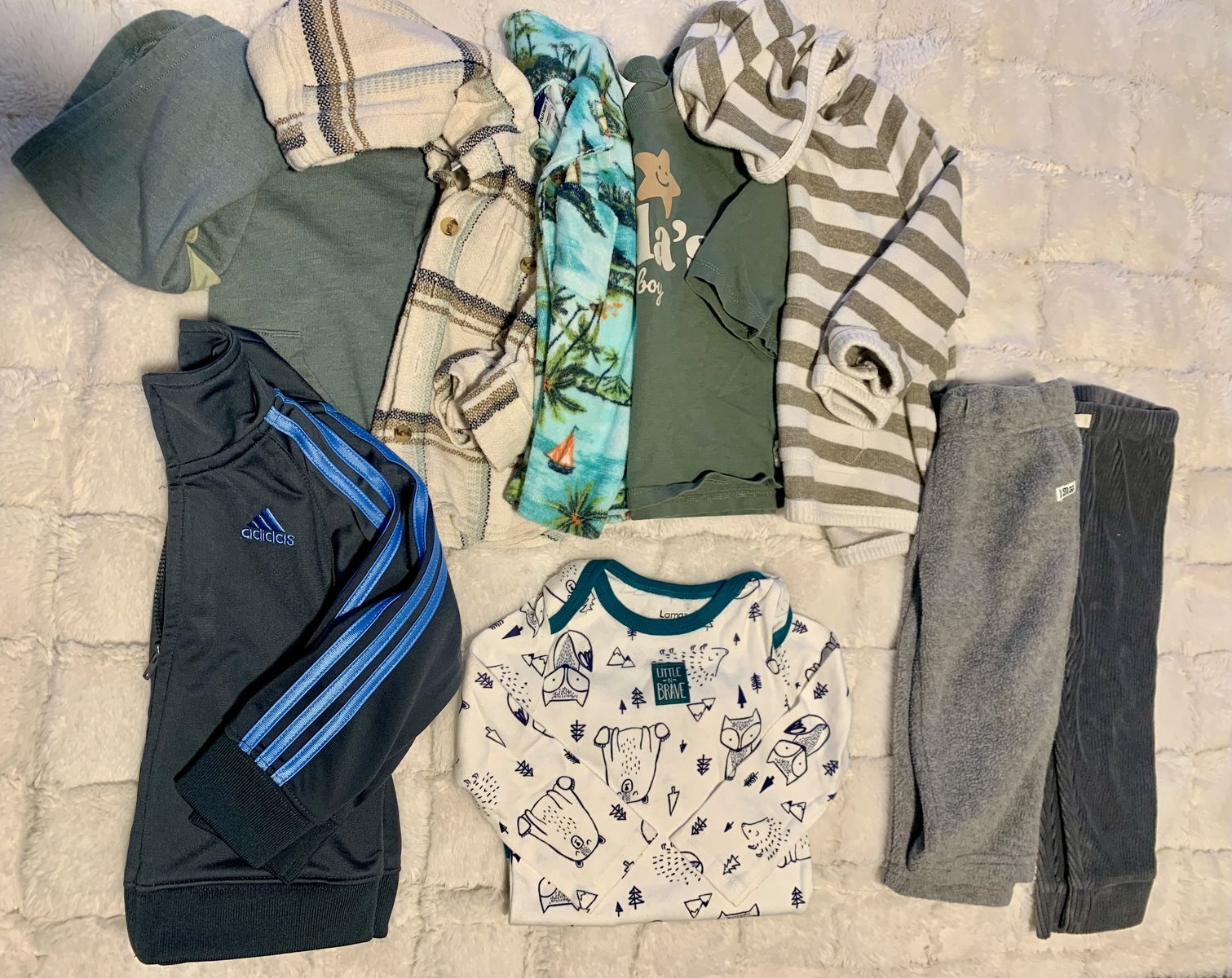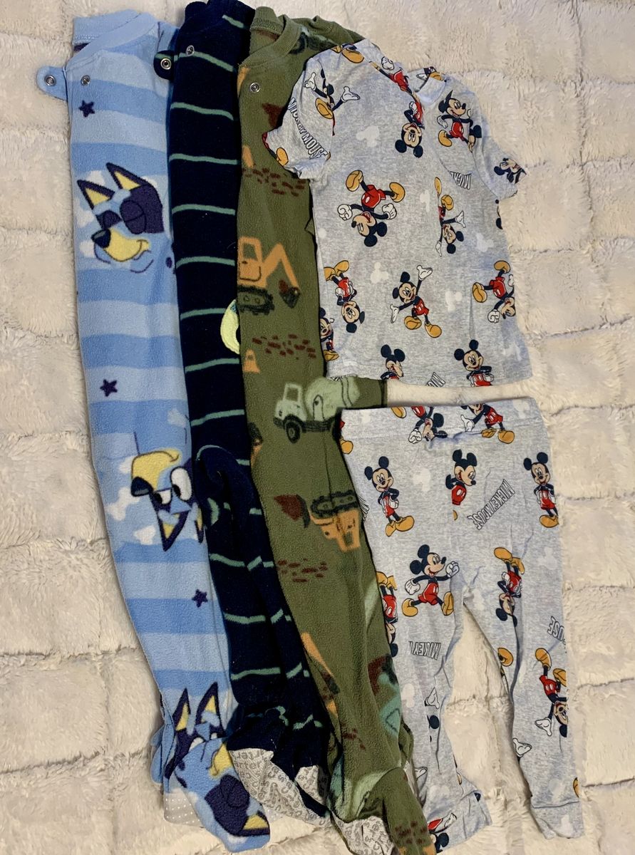 Still in good condition. Lots of matching sets, five pairs of pajamas, lots of tees and shorts