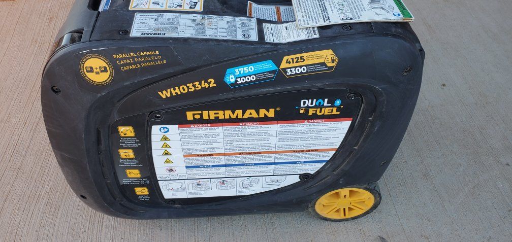 ZelleFirman Dual Fuel Generator Electric & Pull start 45hrs run time cover propane adapter charger extension cord