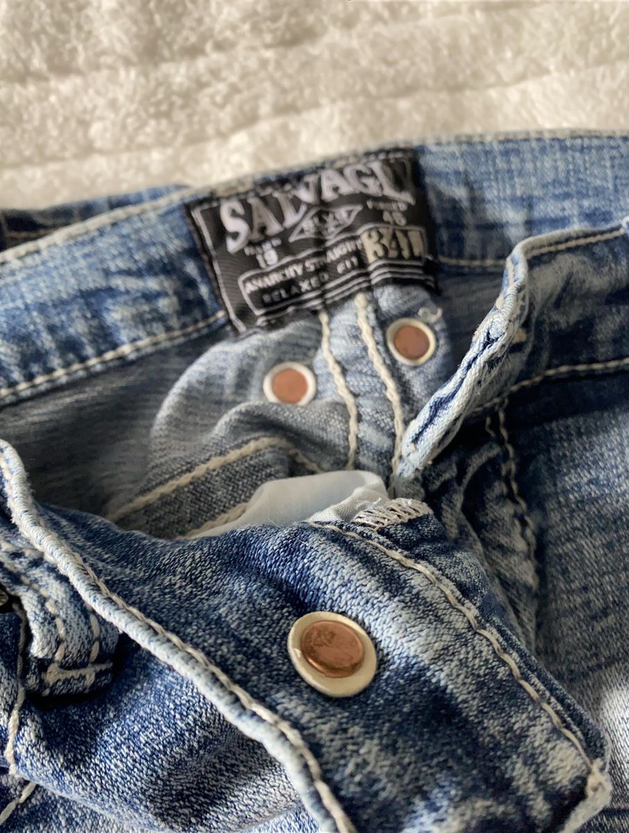 VenmoHere is a lot of salvage mayhem and anarchy jeans. Size is 34 long on all pairs but one is 34reg. To me they fit like 36 in most jeans. These have been worn once maybe not even at all. Save a ton of money 250.00 for all 5 pair. Clean smoke free home