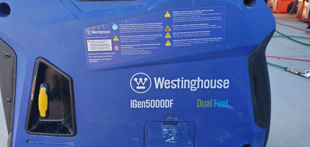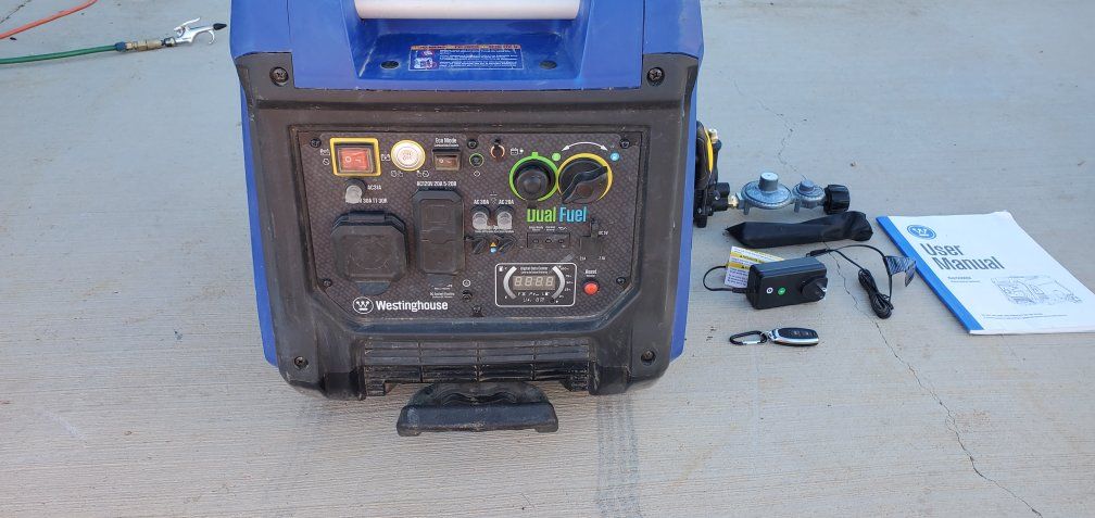 ZelleIGEN5000DF remote start Westinghouse Generator I absolutely loved this Generator. I lost my RV to a fire accident and no longer need the Generator. The generator has 125 hrs run time on it. Included: IGEN5000DF remote start Westinghouse Generator charger remote fob propane adapter oil funnel user manual