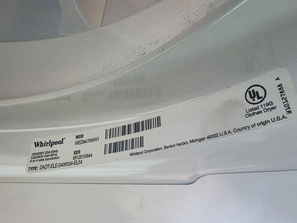 ZelleBoth machines work great and are in excellent condition with no issues. Very reliable set, we only replaced them after upgrading to a newer model. Models: Washer: Whirlpool WFW9640XW00 Dryer: Whirlpool WED9470WW1 (Electric) Includes: • Dryer power cord • Hot and cold water hoses • Stacking hardware (can be stacked or used side-by-side) Clean, well cared for, and ready to use. $450 for the set