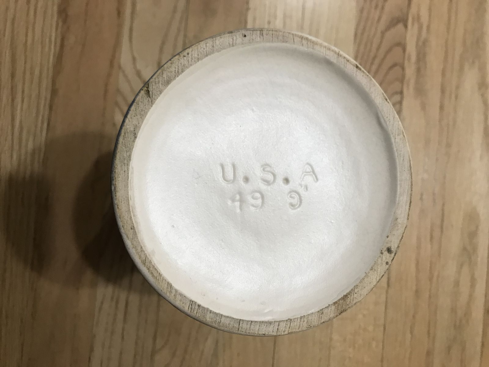 VenmoThis vase is stunning and unusual. It is a three toned vase that goes from blue, to cream, to pink. It has the double handles and is the same design on both sides. I believe it was made between 1938-1946. It is a heavy, well made vase. It is 9 1/4 inches tall x 6 inches wide. The vase is in excellent condition. It is marked on the bottom USA 49-9. Helping a parent to sell this, so the price is firm.