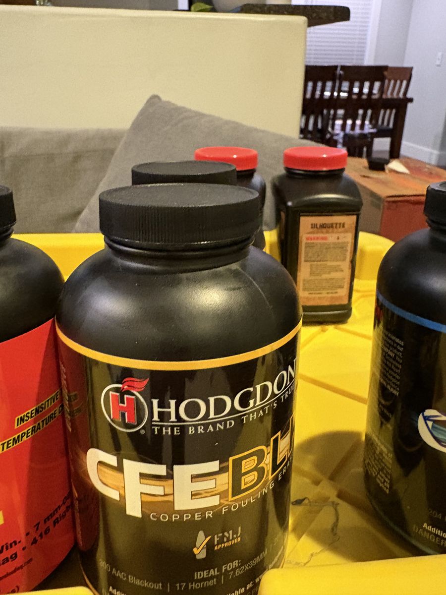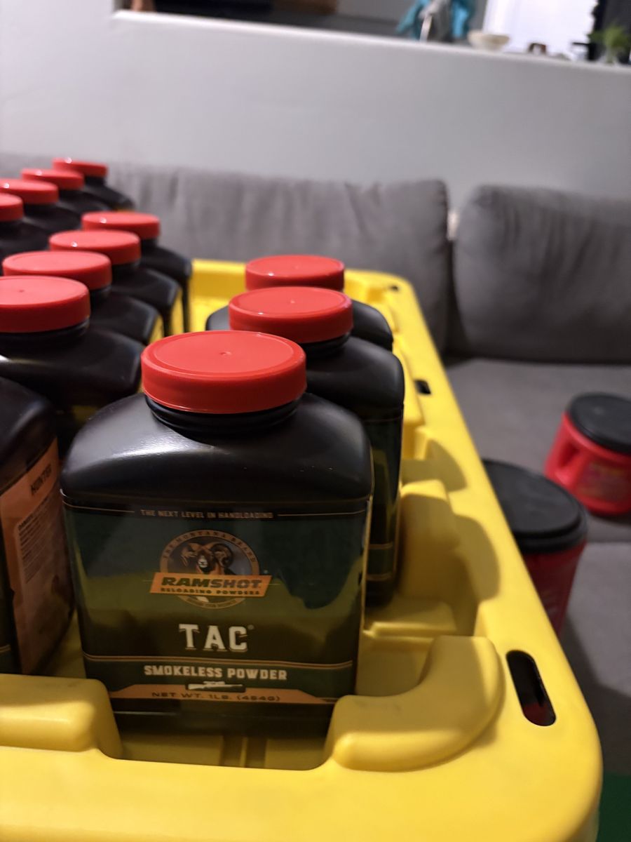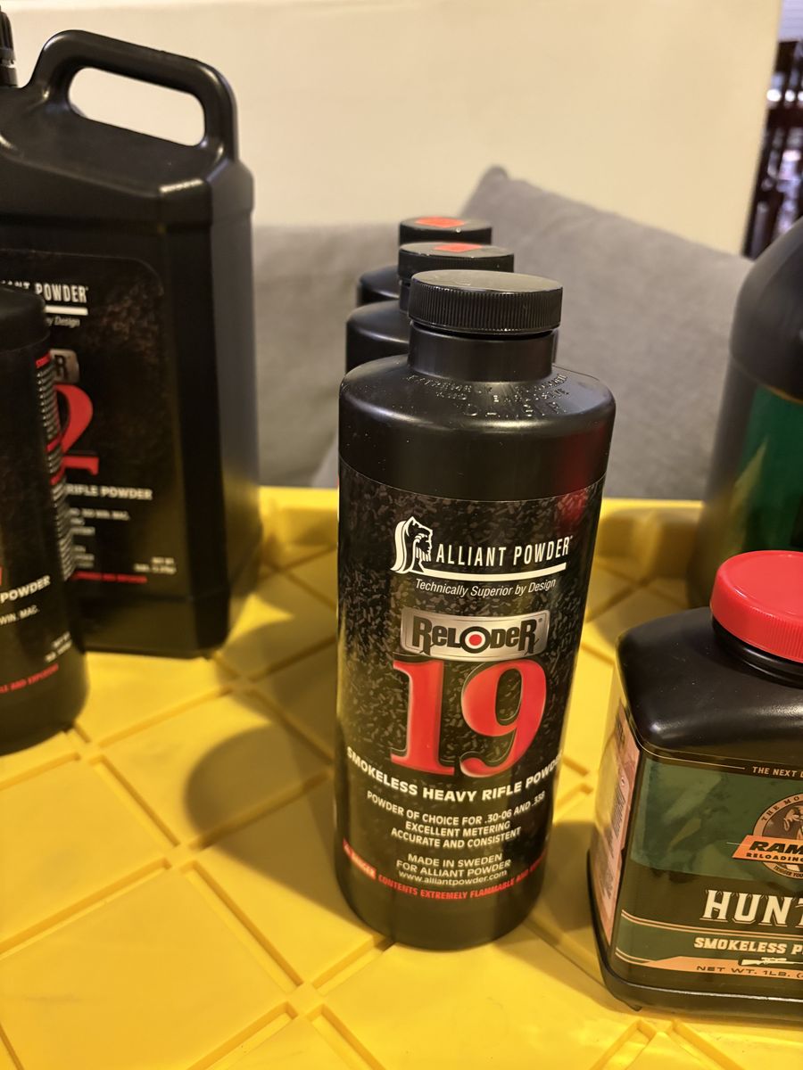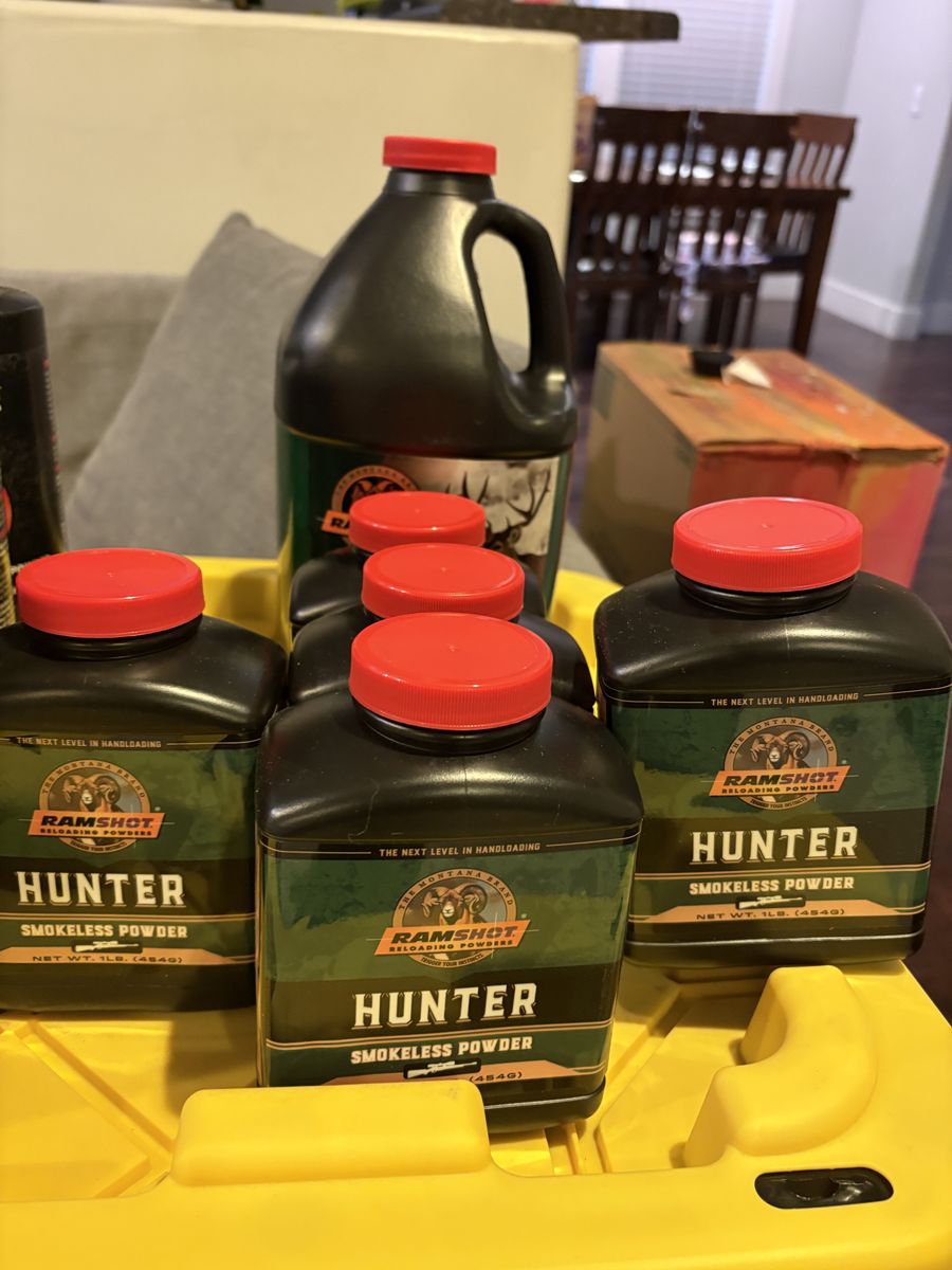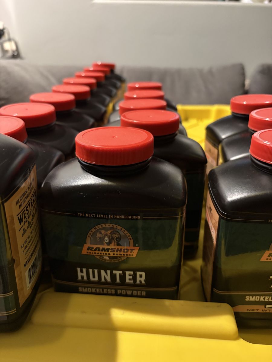 9 lbs magnum 3 lbs TAC 3 lbs Enforcer 2 lbs 8202 13 lbs hunter 6 lbs RL22 3 lbs RL 19 5 lbs Winchester 296 2 lbs 4064 IMR 6 lbs H335 1 lb IMR 4451 2 lbs CFE BLK 1 lb CFE 223 2 lbs Silhouette