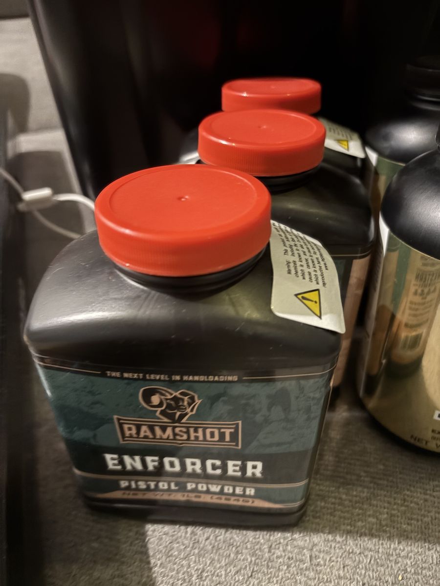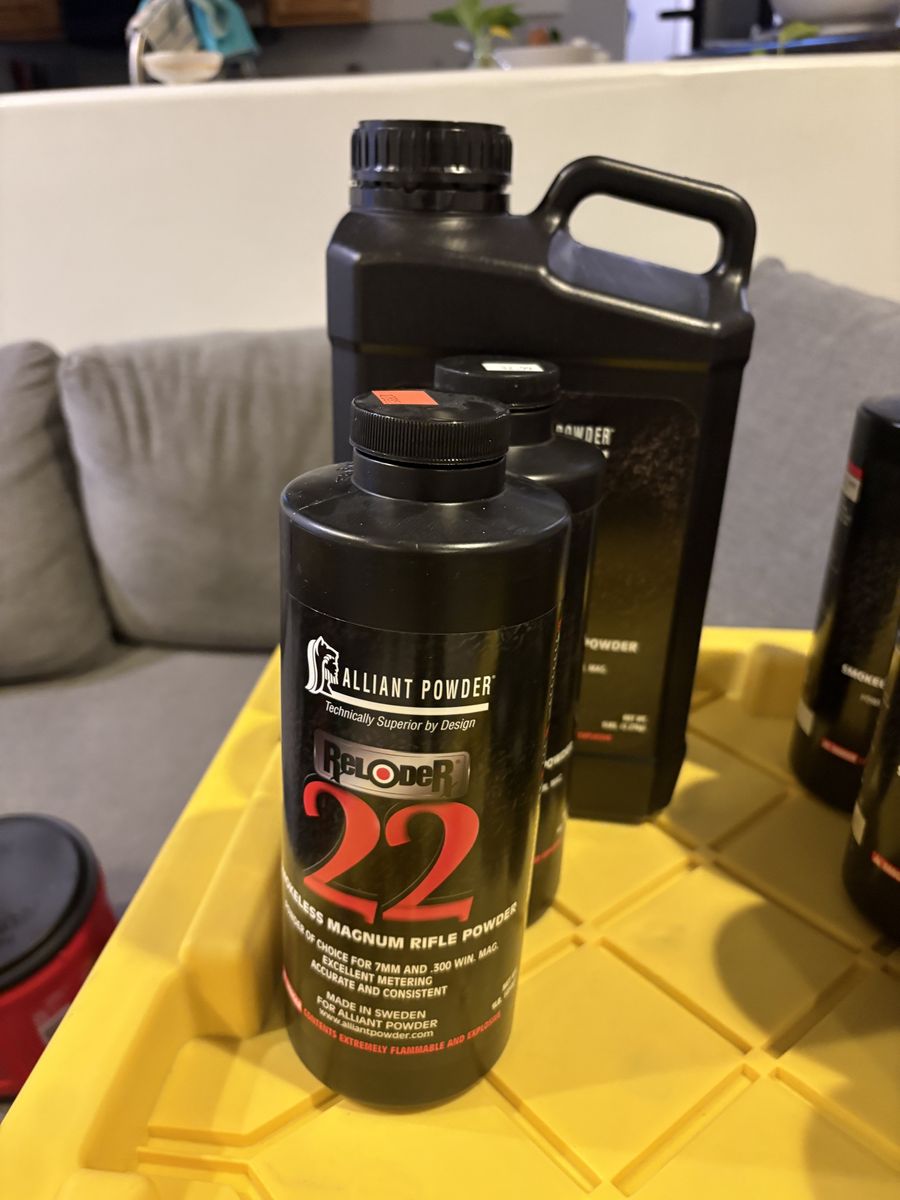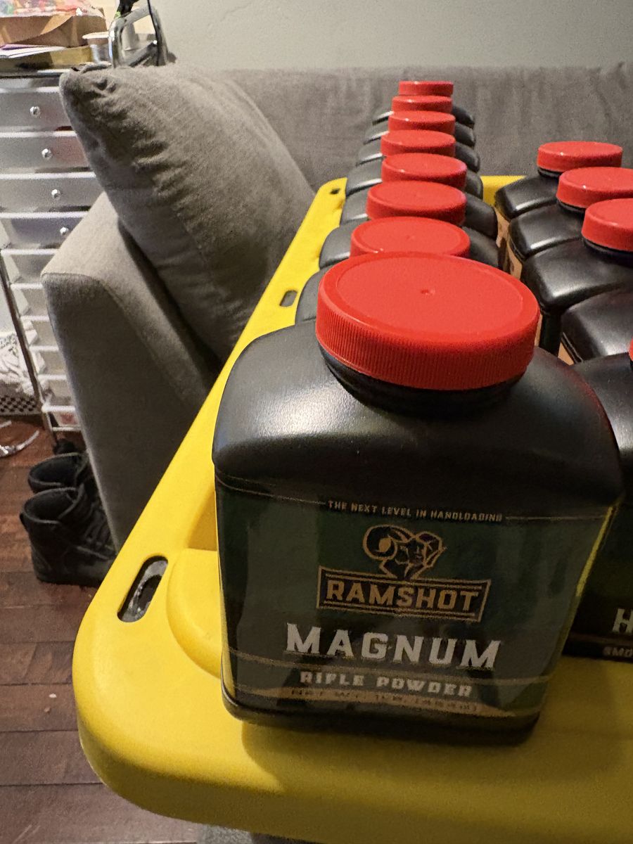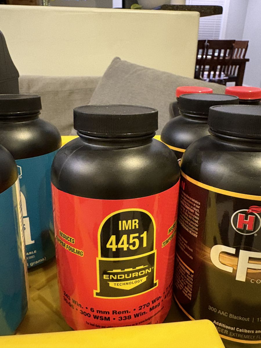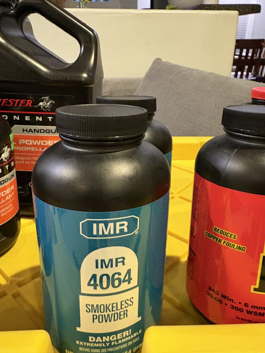 9 lbs magnum 3 lbs TAC 3 lbs Enforcer 2 lbs 8202 13 lbs hunter 6 lbs RL22 3 lbs RL 19 5 lbs Winchester 296 2 lbs 4064 IMR 6 lbs H335 1 lb IMR 4451 2 lbs CFE BLK 1 lb CFE 223 2 lbs Silhouette