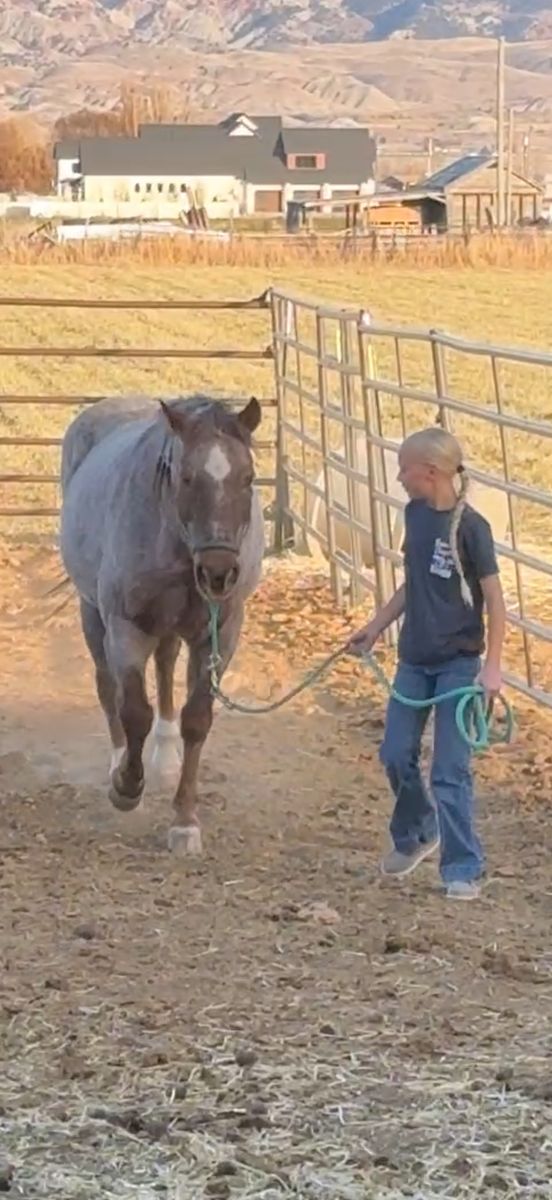 VenmoLucky is a 13-year-old red roan gelding. He is POA size, with the sweetest disposition and a true beginner-friendly attitude. He has been the perfect horse for our daughter to learn on and gain confidence riding.