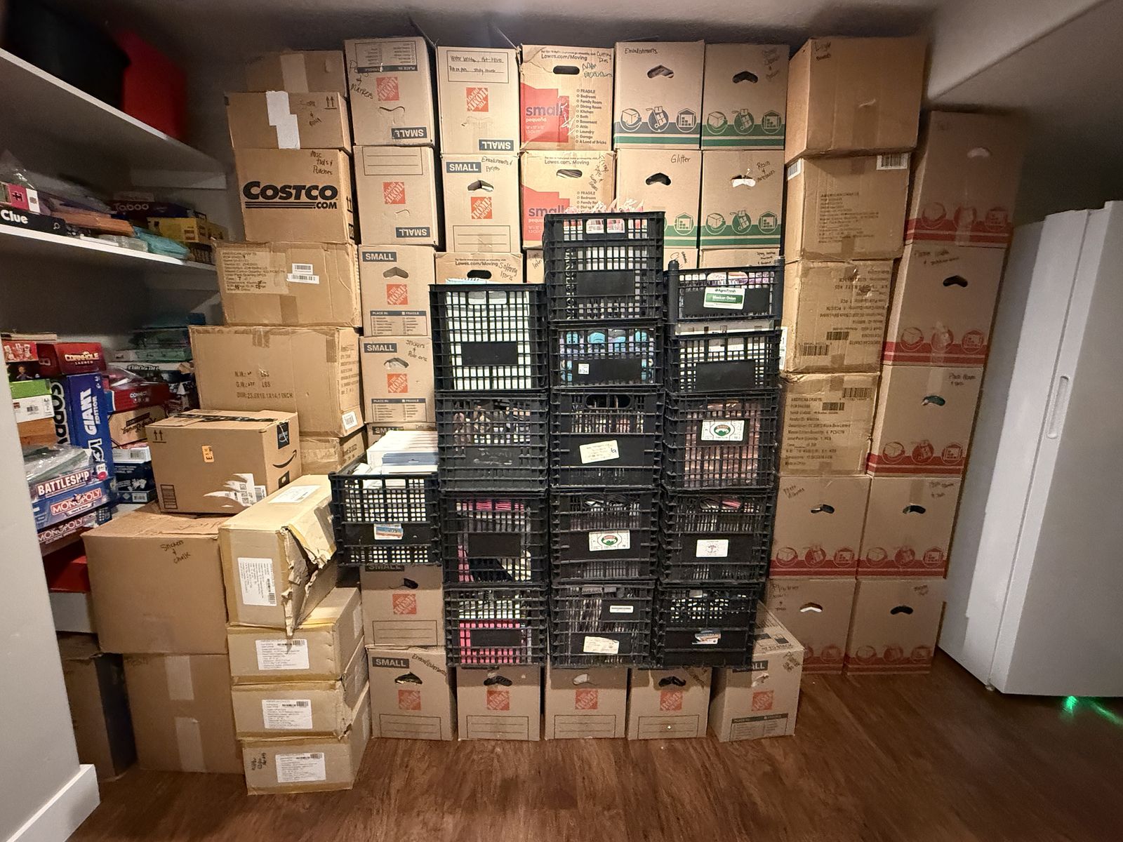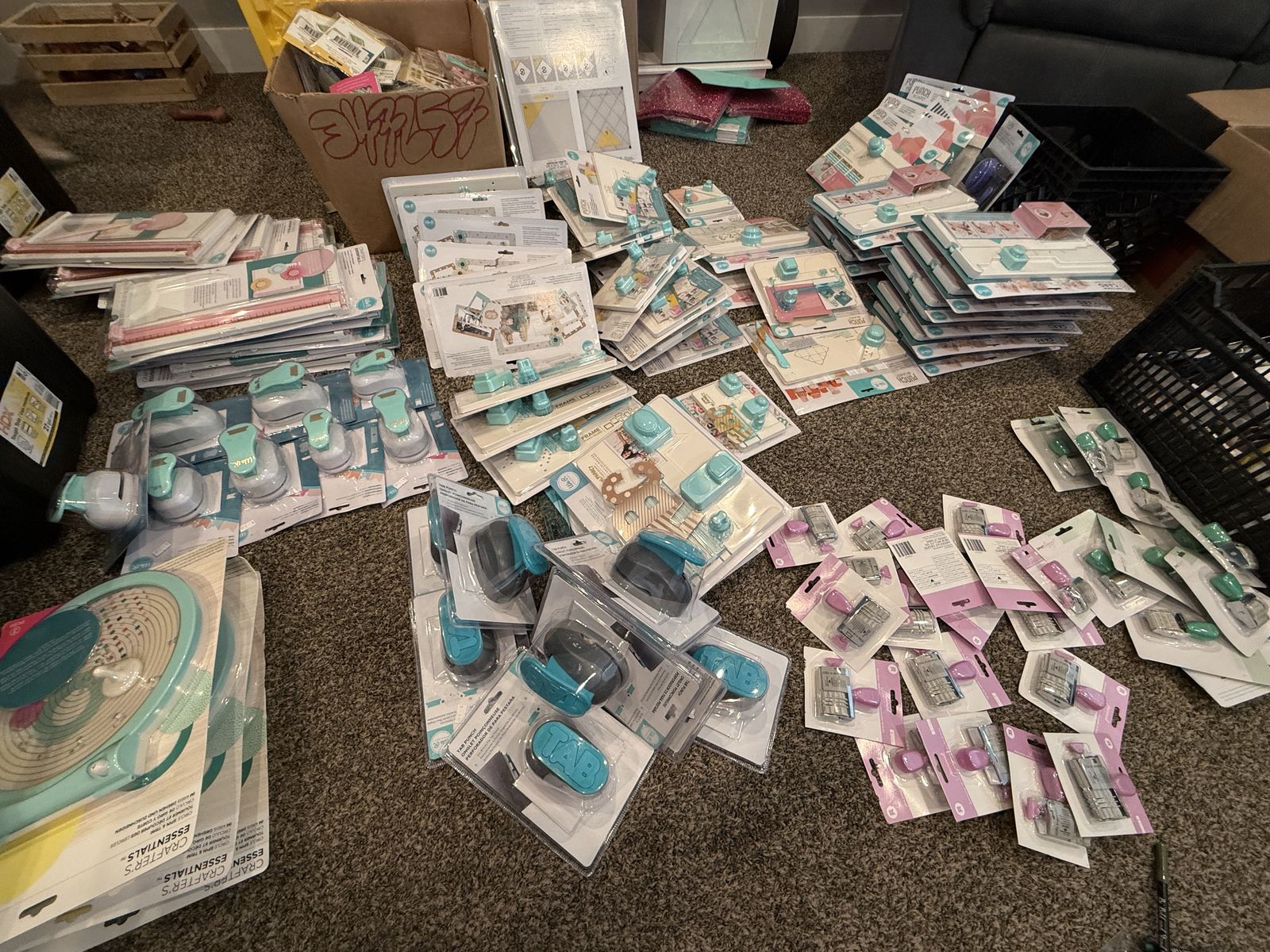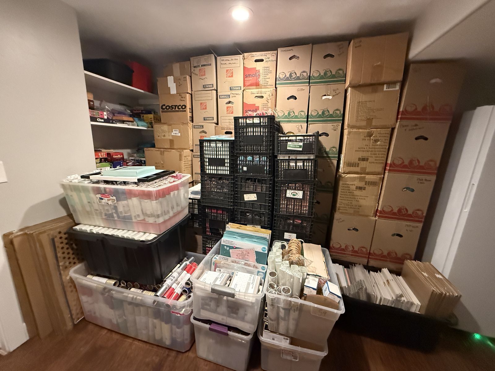 There are 72 boxes, 15 crates, and 17 large totes full of supplies. The photos only show a small portion of what’s included.