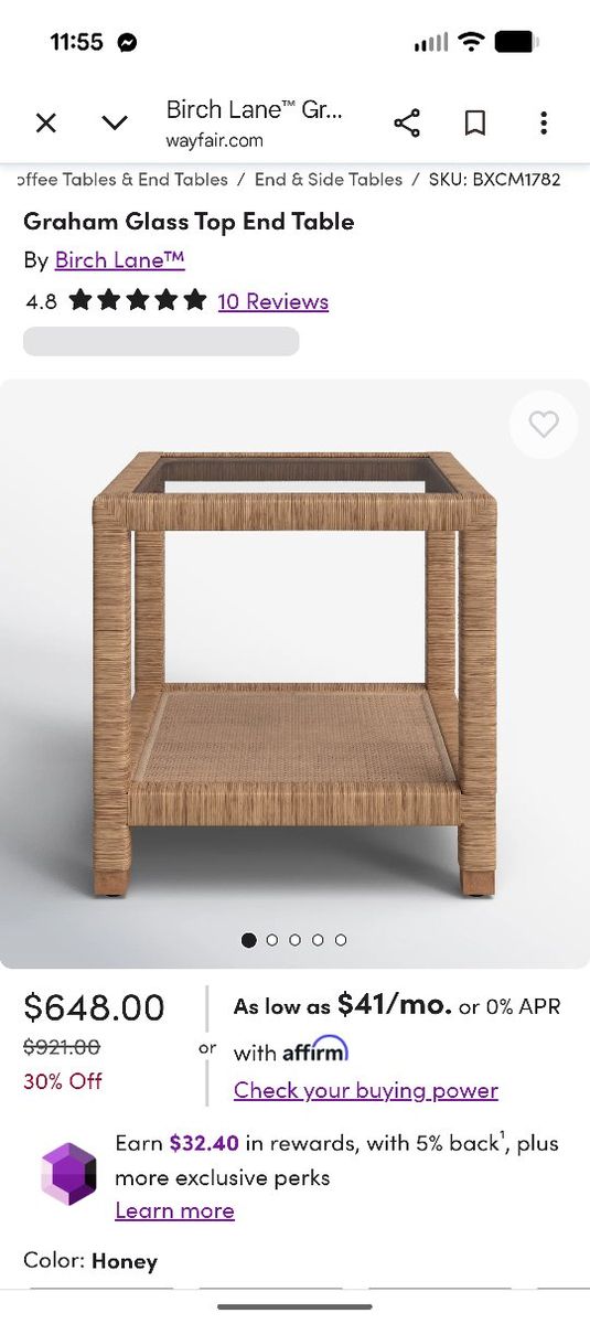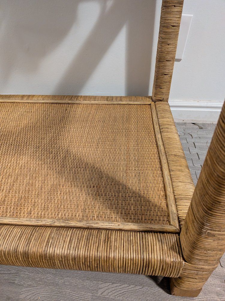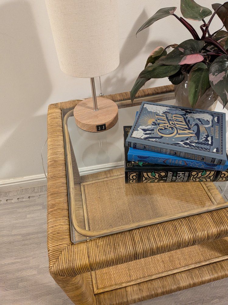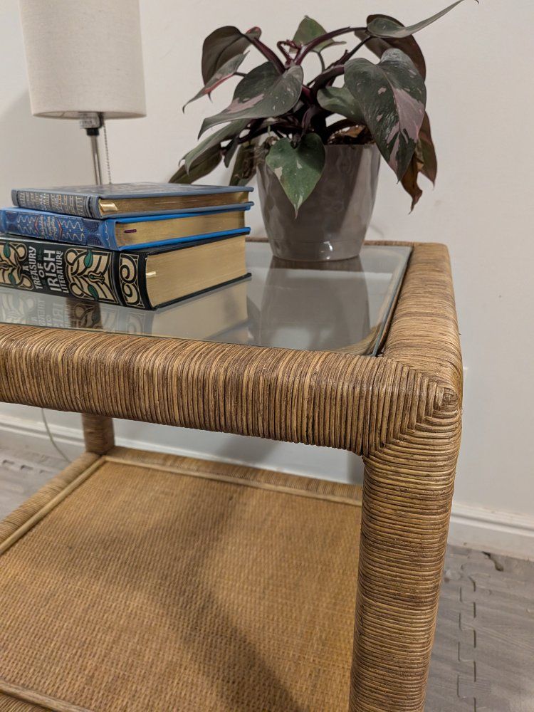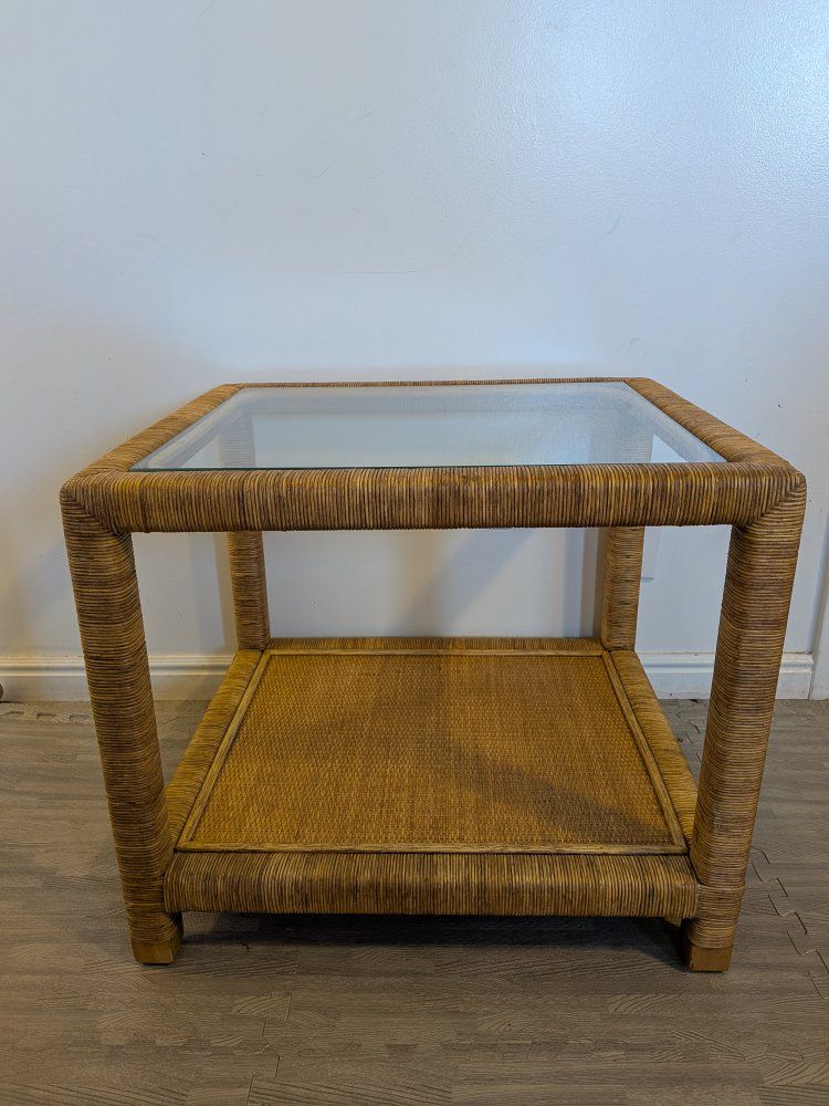 VenmoBRAND NEW, beautiful woven rattan end table with inset glass top and lower shelf. This piece has a classic coastal / beach house style and works great as a side table next to a sofa or chair. Serena & Lily / Birch Lane style.