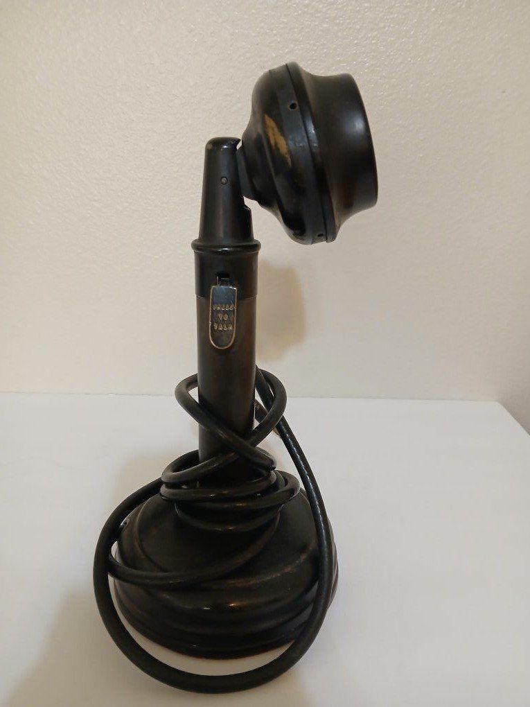 VenmoAntique T-32 press to talk candlestick microphone M.F.P., 1945/1946 PL-68 plug possibly military complete.