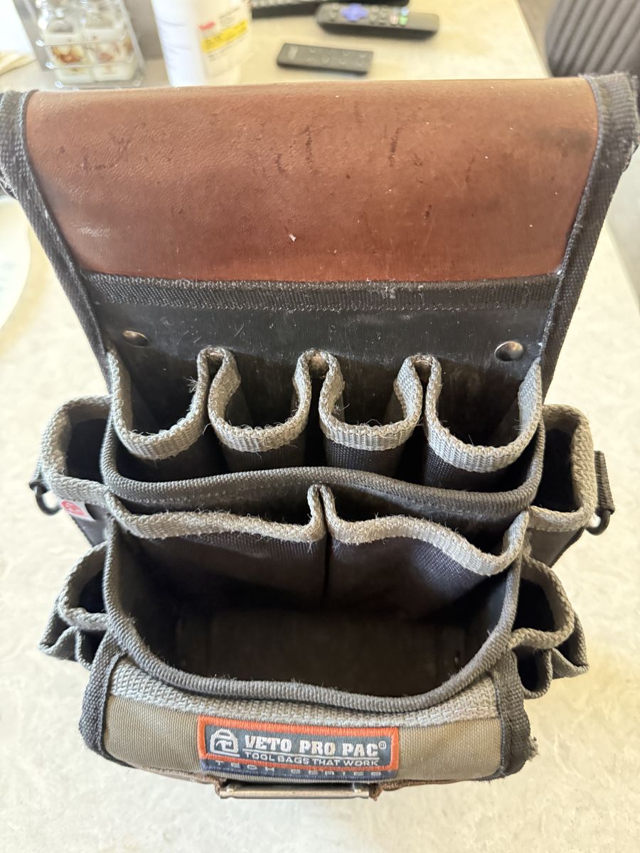 Durable Veto Pro Pac TP4B Tech Series tool pouch for sale. Has lots of pockets for organizing your tools and a sturdy belt clip. Great for keeping your essentials handy on the job.