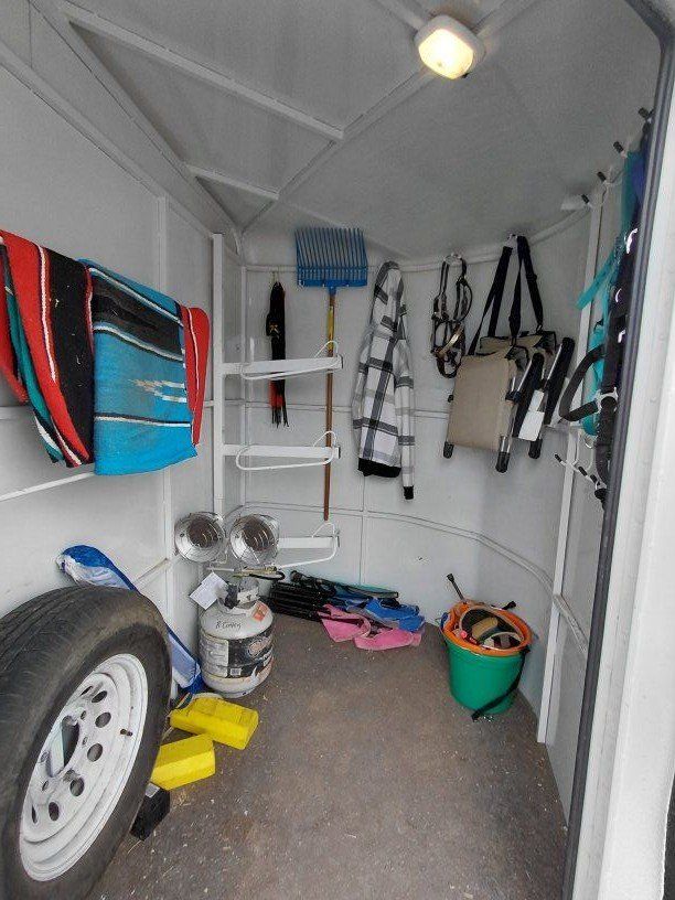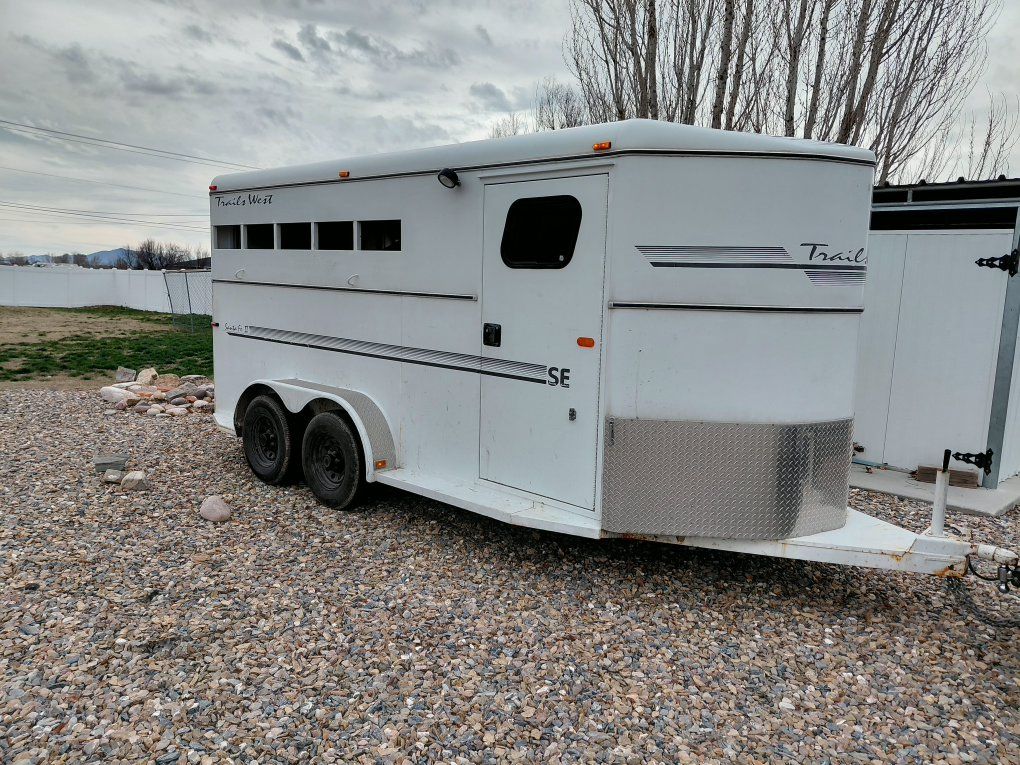 2000 Trails West Santa Fe 3H Slant Load Bumper pull Horse. Designed as a 3-horse slant load with two dividers. Hauls smooth and straight. ️ Rubber floor mat "1 piece" and rubber-lined on one wall (no rips or tears) ️ Floor is Wood and in great condition condition. Trailer does have some rust and small dings as for the year of the trailer normal. The tires and rims have less then 200 miles on them. Bought them new at the end of 2025. Axles are rated at 5200 to 7000 pounds. See axle spec pictures and axle tag Features Include: • Spare tire • Front tack room • 3 space saddle rack • Halter and bridle hooks • 2 Saddle pad racks • Corner water tank with hose • 4 new rims 6 lug • 4 new tires • Interior light in tack room and stall. area. Outside spot light by tack room • Tack door organizer Easy take out dividers See Less