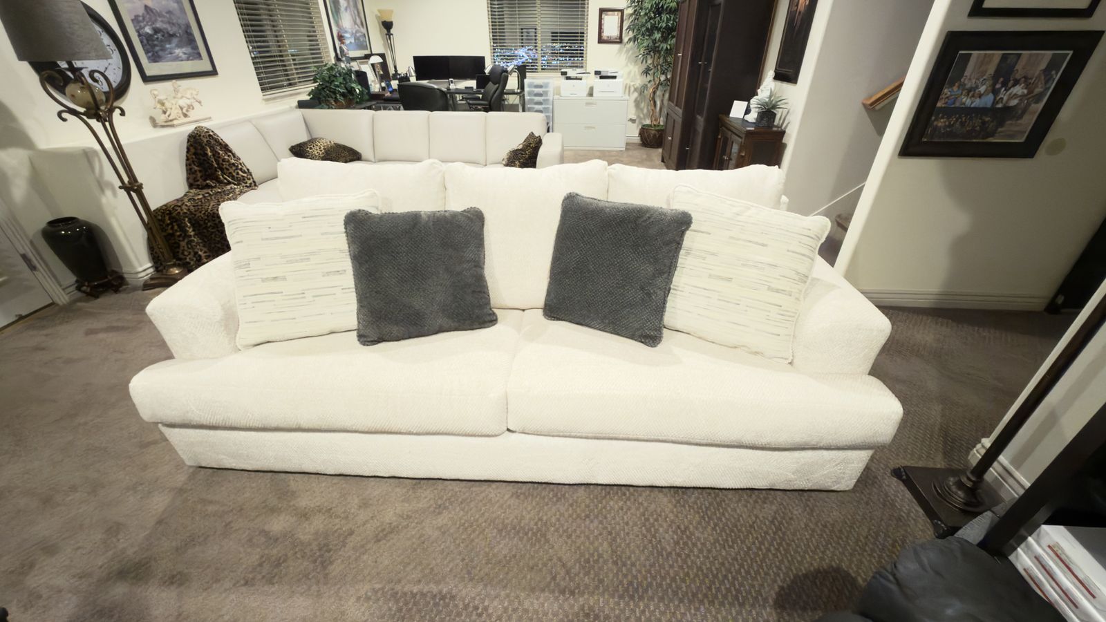CashAppBrand-new, super-comfortable sofa from Living Spaces. Bought less than 6 months back. Used very little. It includes 4 pillows. Dimensions 96W × 40D × 39H Package Dimensions 96.0W × 40.0D × 39.0H Weight 163 Ibs Sleeper Dimensions N/A Seat Width (in) 38.0 Seat Depth (in) 22.0 Seat Height (in) 20.0 Interior Back Width (in) 76.0 Interior Back Height (in) 21.0 Frame Height (in) 39.0