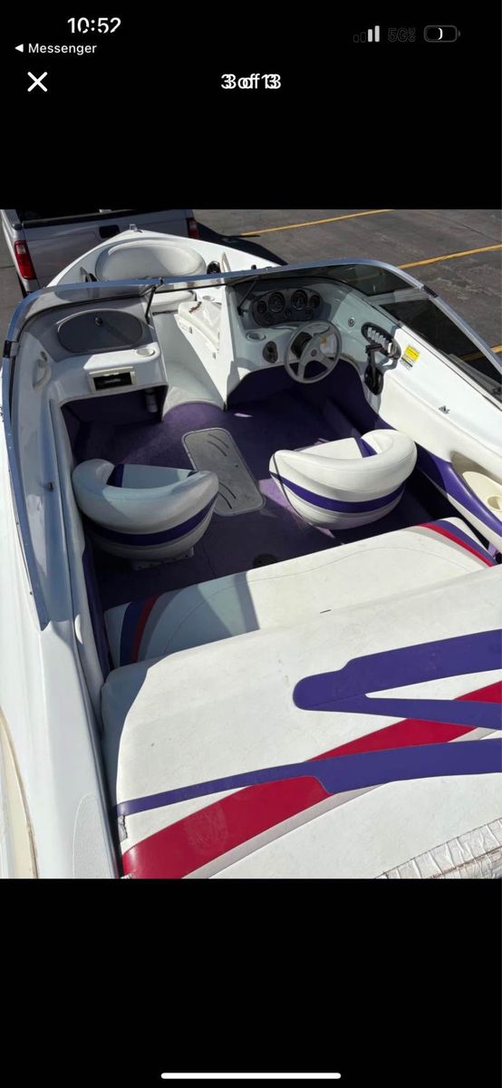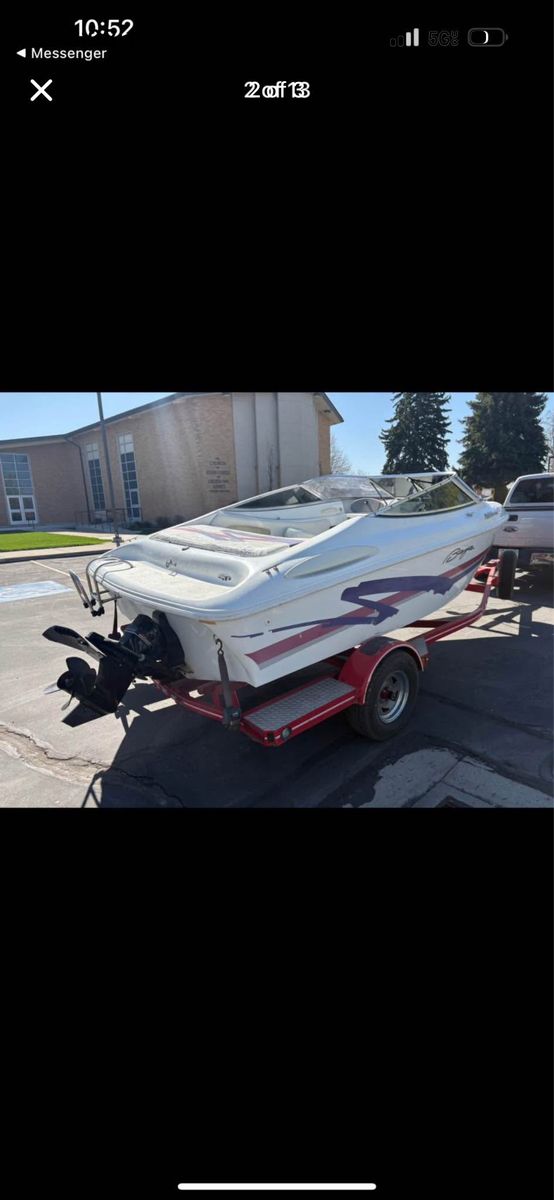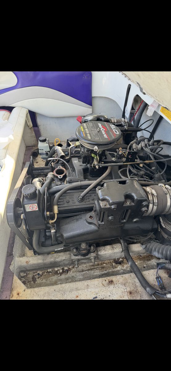 VenmoWe love this boat but just don’t use it often enough! Has a v8 5.0 in it that runs great! The Boat has right around 300 hours on it. I will have to check the gauge next time I have the cover off. It is currently winterized still. It has a sound system that sounds pretty good. I think either one of the Bellows or one of the shift boots is leaking some water into the boat. while we were out on the lake last year, Every once in a while I would just flip on the bilge pump. The oil in the outdrive and the engine was still as perfect as when it was put in. The rear Hatch seat came unstitched at the rear seam, and the very front seat, someone put a spare tire on it before they covered it for the winter so that seat has a black tire stain on it. It did not change the texture. Just left a black mark on it. All I have done since owning the boat is replaced the thermostat and the oil in the engine and the outdrive. It is a good looking boat and rides really good on the water. Trades? Golf cart