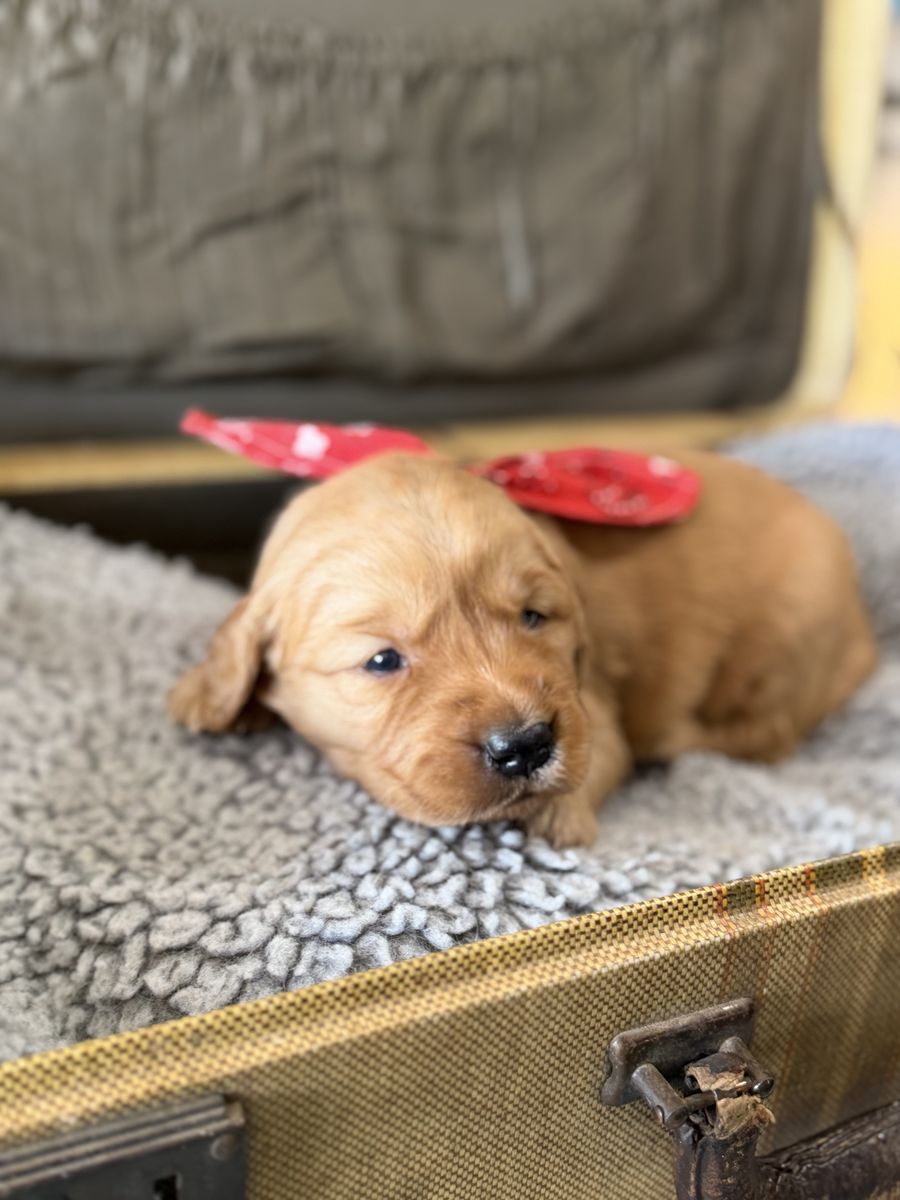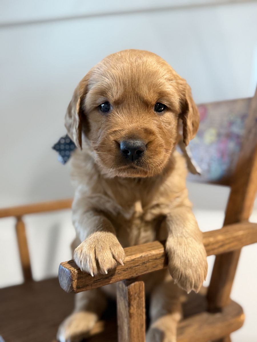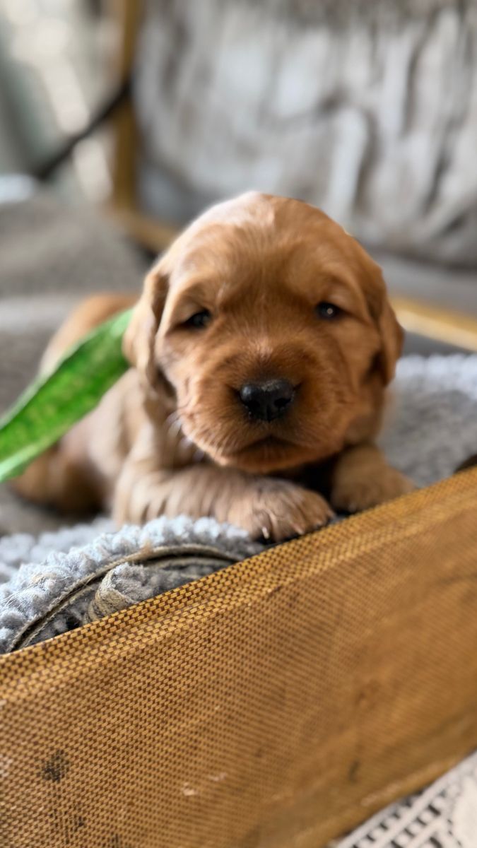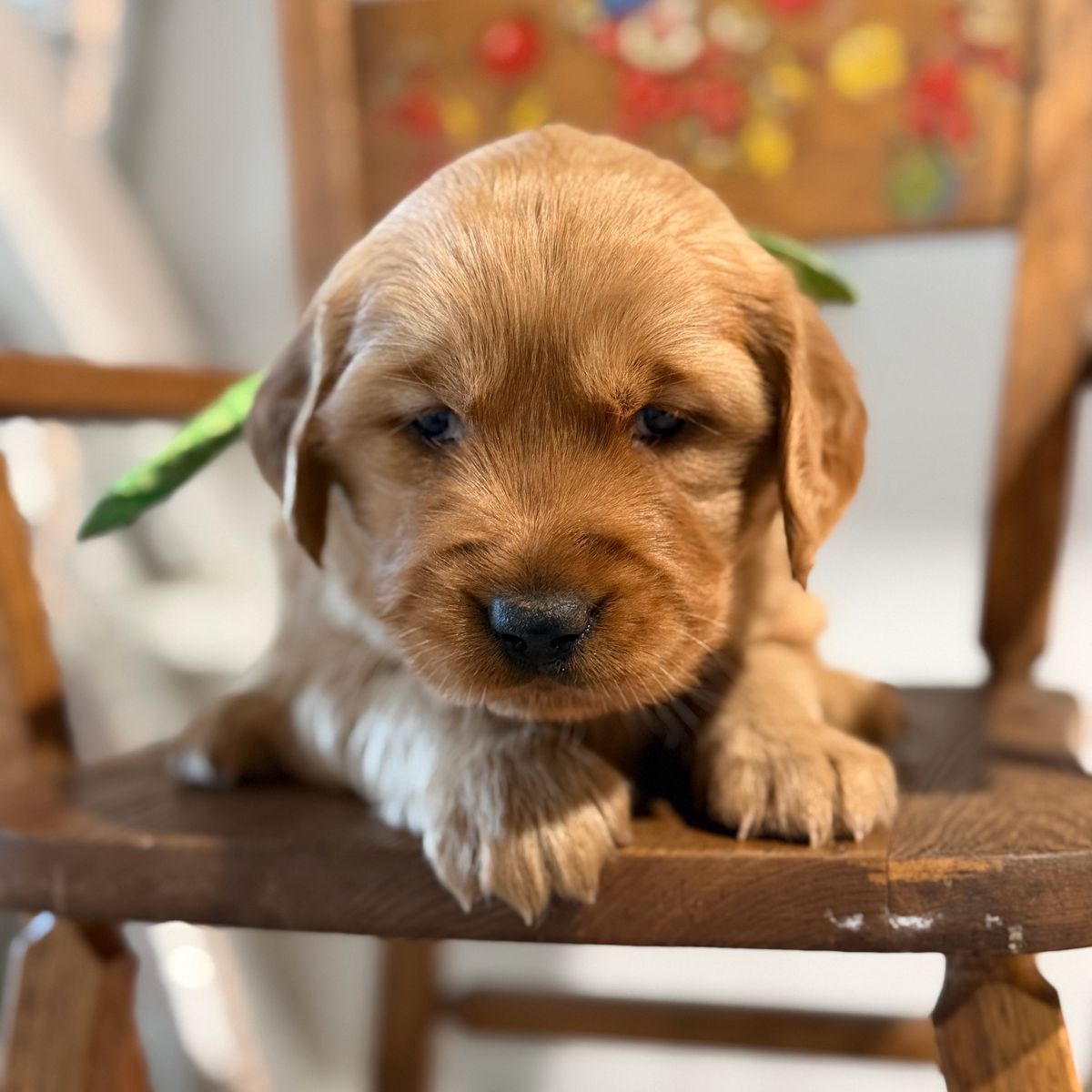 Don’t miss out on these beautiful AKC Golden Retrievers. They are AKC pure bred, field line, dark red golden retriever puppies born on Feb 16,2026 We have 5 females and 2 males. Parents have been health tested. Puppies will go home mid April, having received their first set of vaccines, been dewormed and microchipped. Parents are health tested and have the most amazing dispositions. I have been breeding for 12 years and am happy to answer any questions you might have. Our website is www.pawsitivelygoldens.com Breeding rights are not available