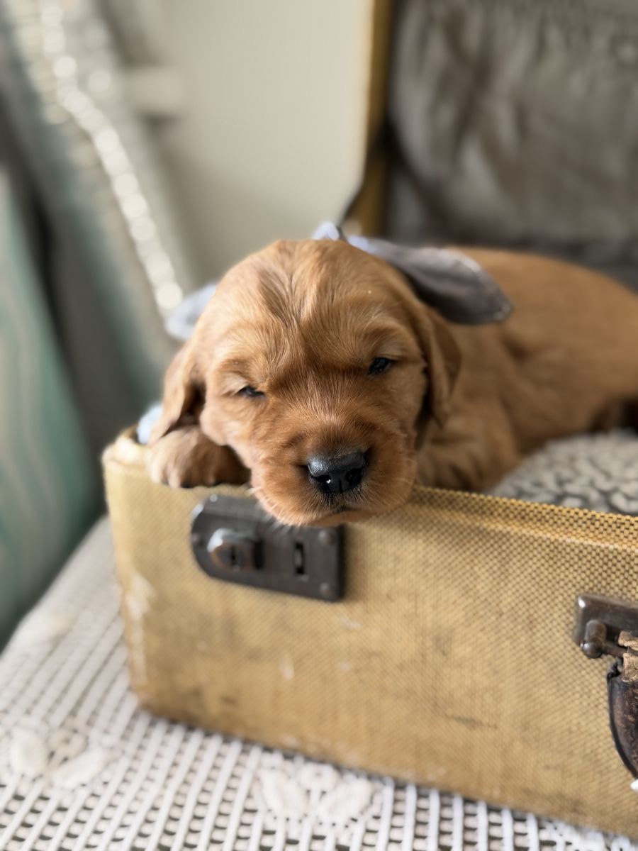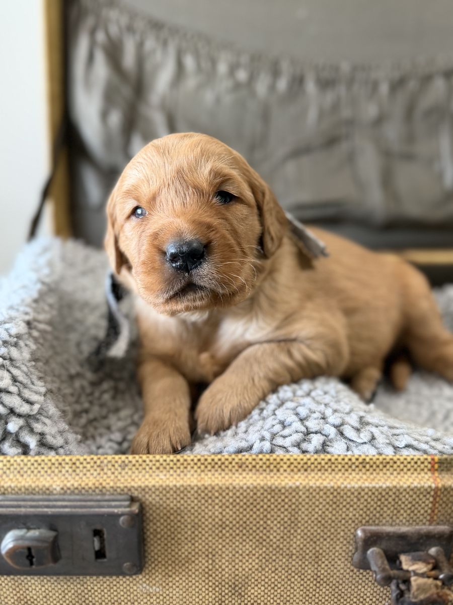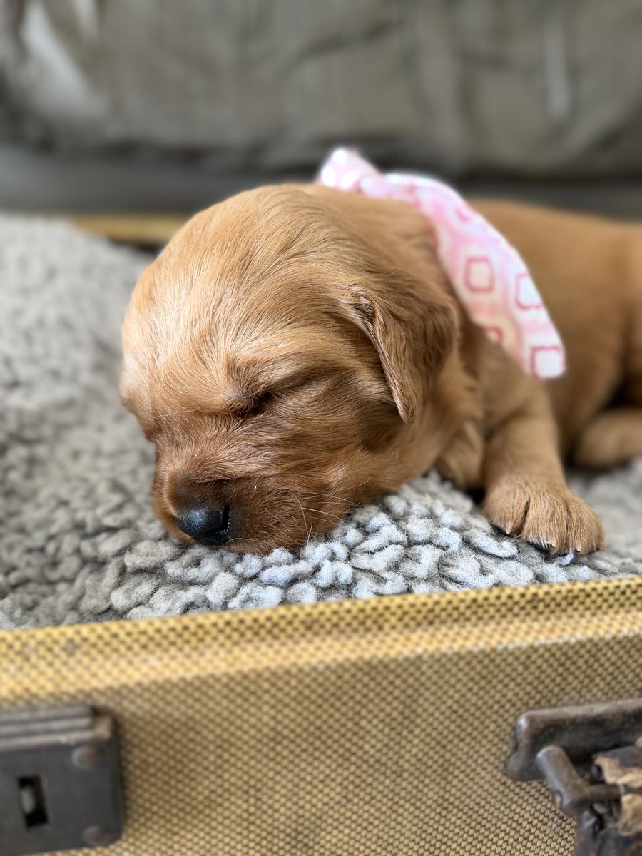 Don’t miss out on these beautiful AKC Golden Retrievers. They are AKC pure bred, field line, dark red golden retriever puppies born on Feb 16,2026 We have 5 females and 2 males. Parents have been health tested. Puppies will go home mid April, having received their first set of vaccines, been dewormed and microchipped. Parents are health tested and have the most amazing dispositions. I have been breeding for 12 years and am happy to answer any questions you might have. Our website is www.pawsitivelygoldens.com Breeding rights are not available