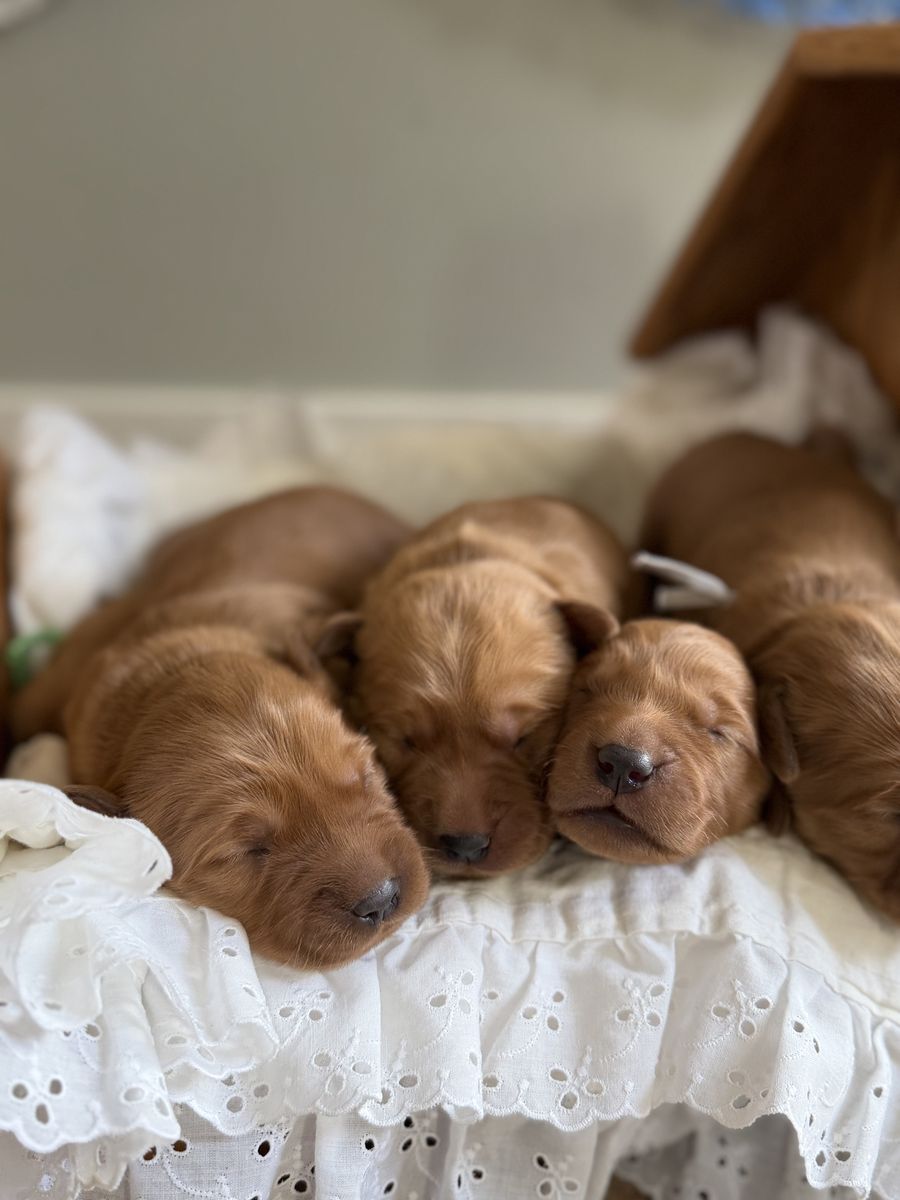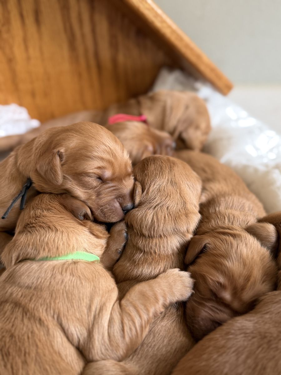 Don’t miss out on these beautiful AKC Golden Retrievers. They are AKC pure bred, field line, dark red golden retriever puppies born on Feb 16,2026 We have 5 females and 2 males. Parents have been health tested. Puppies will go home mid April, having received their first set of vaccines, been dewormed and microchipped. Parents are health tested and have the most amazing dispositions. I have been breeding for 12 years and am happy to answer any questions you might have. Our website is www.pawsitivelygoldens.com