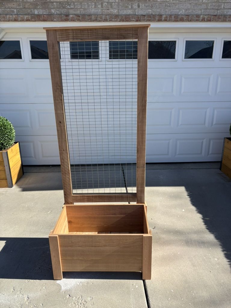 VenmoCedar Planter with wire trellis box is 29" X 16". Terllis is 72" tall