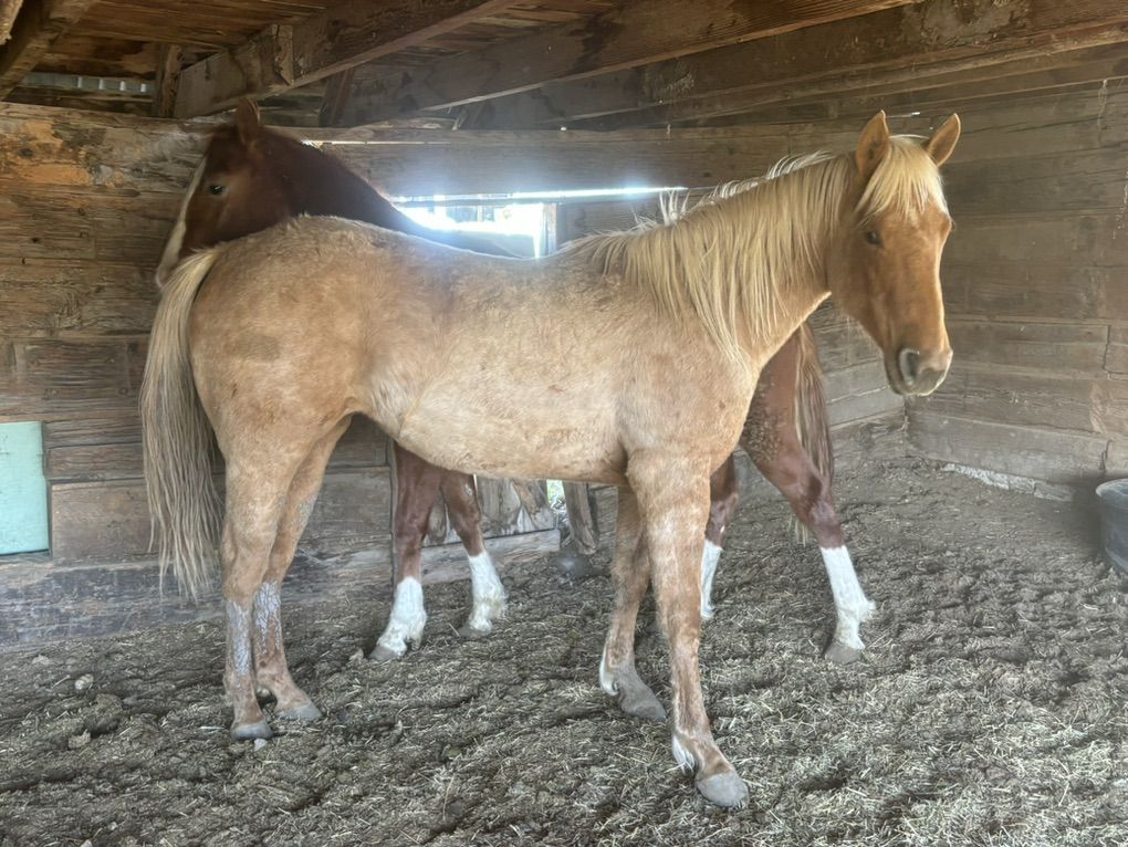 2 year old filly up for grabs at the right price. She’s ready to start in any direction. She will be a stout mare with a size 1 shoe.