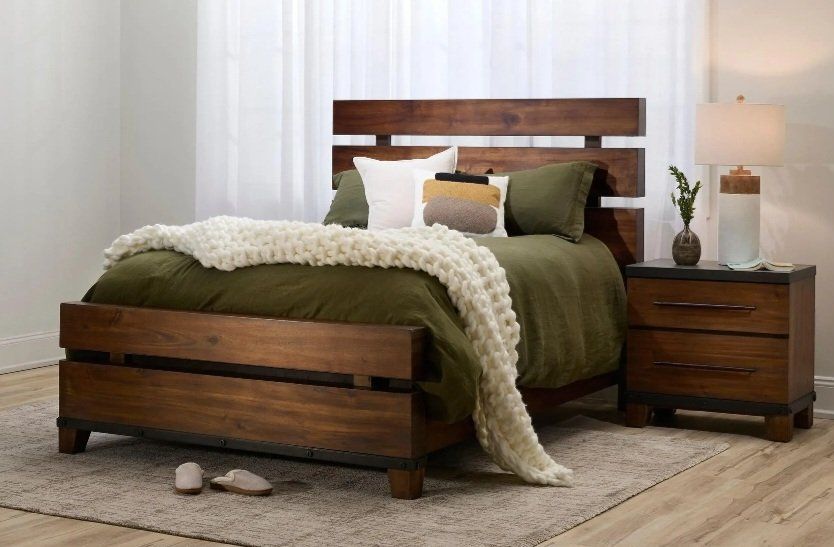 Elevate your bedroom’s style with the handsome, time-honored look of the new collection. Solidly crafted, this king-size bed with everything that you see in the picture. I have a job in a different state and I will give you a deal.
