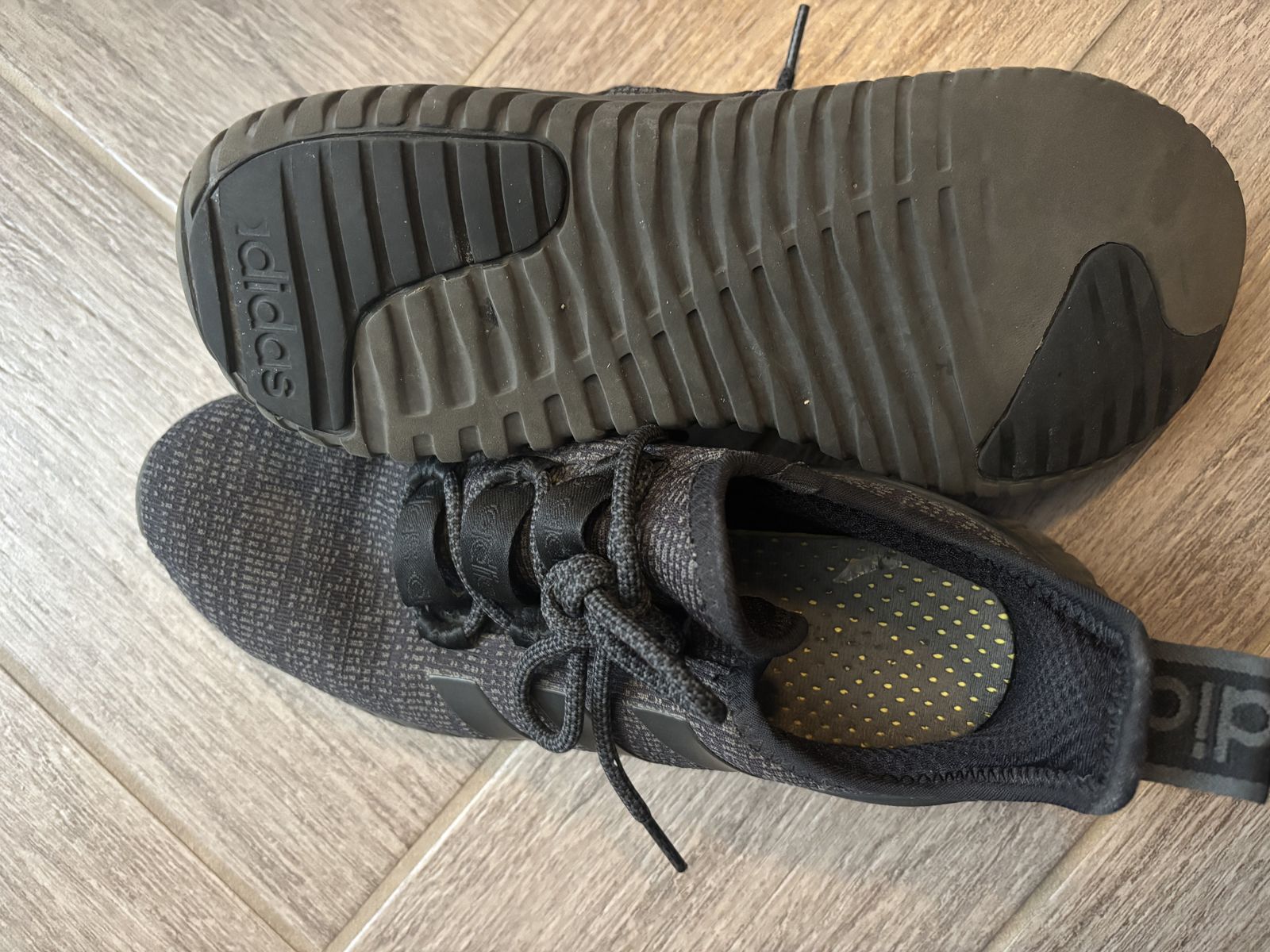 The product is a pair of Adidas Kaptir 3.0 sneakers in a size 8.5. The shoes are designed in a sleek triple black color scheme with a knit upper material. Part of the Adidas Kaptir product line, these athletic sneakers are suitable for men looking for a stylish and comfortable footwear option for various activities. With the release year set for 2023, these sneakers offer a modern and trendy addition to any athletic shoe collection.
