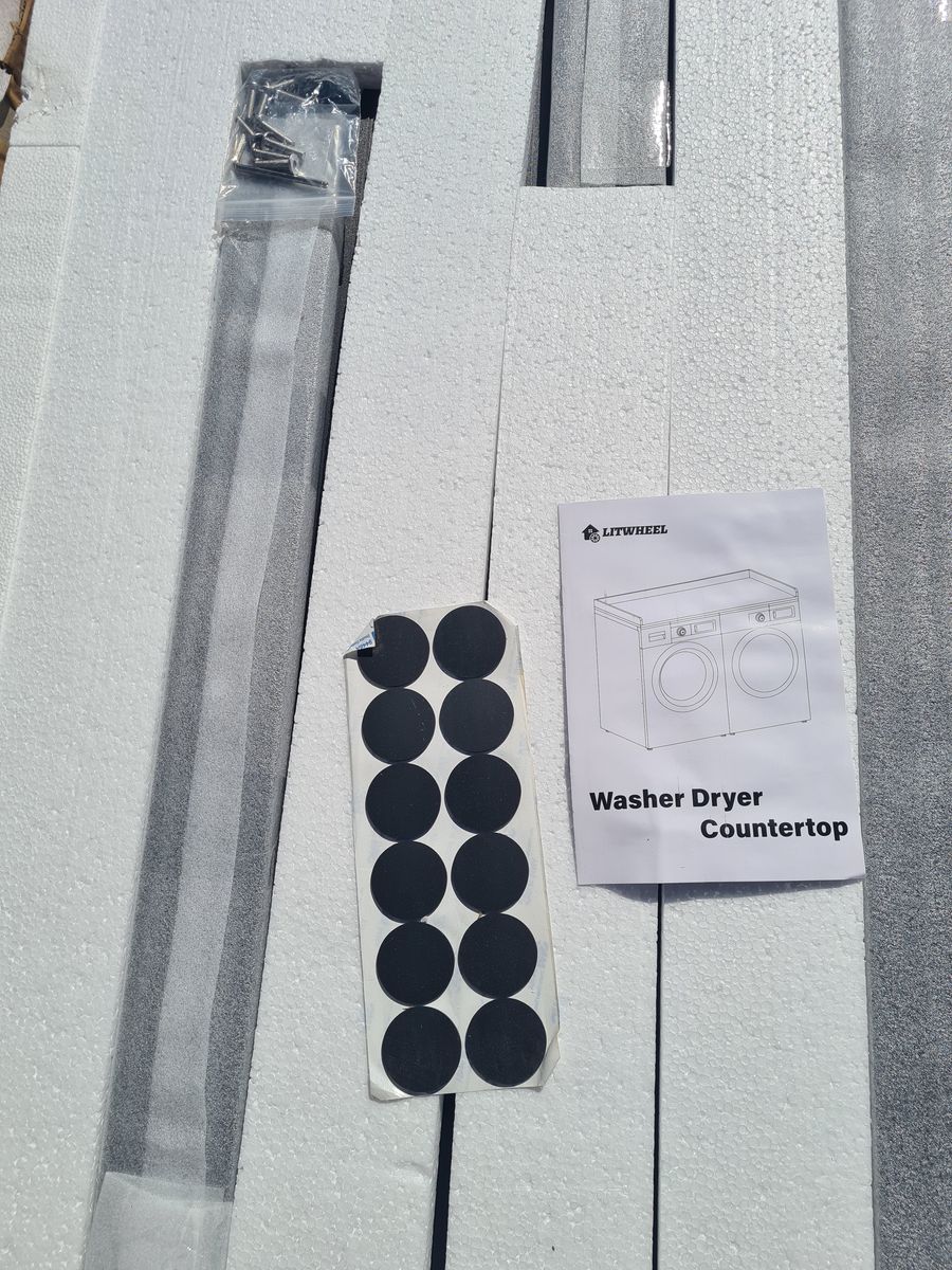 ApplePayWasher & Dryer Countertop Black with side and back rails to prevent things from falling.