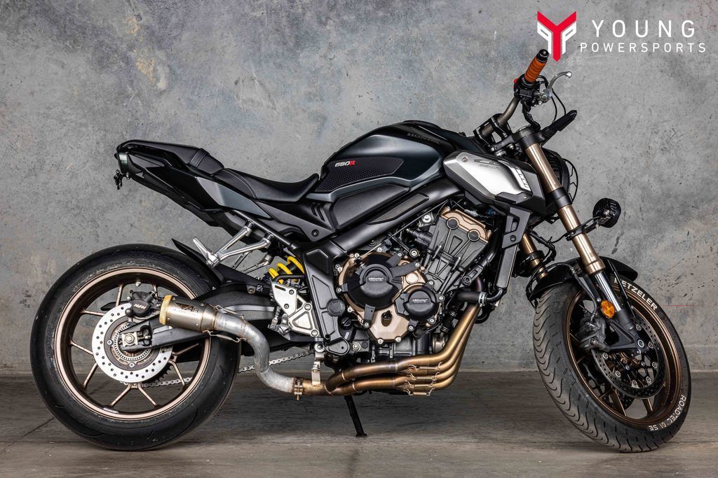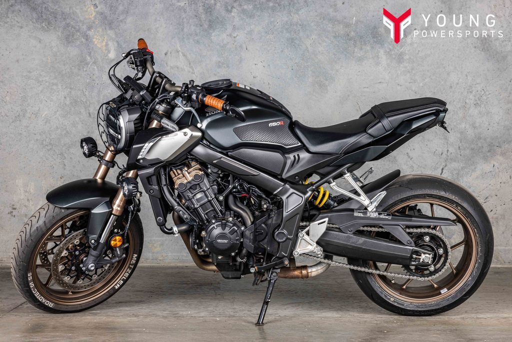 2021 Honda® CB650R ABSAWESOME JUST GOT AWESOMERHonda’s legendary CB750K0 introduced the motorcycling world to the modern inline-four, and the world has never looked back. That’s because the configuration delivers a magical balance of power delivery, smoothness, and instant acceleration in a tight, clean package. Plus, there are those awesome waterfall headers! Today, Honda’s CB650R stands almost alone in offering that combination in a 650-sized machine. Plus, we wrap it all up in a contemporary take on the modern naked sportbike we call Neo Sports Café. For 2021, we’ve updated the engine, the styling, and most important, added a new 41mm Showa SFF-BP “Big Piston” fork, making a great machine even better.Features may include:PERFORMANCE649cc DOHC ENGINEEngines like this are what Honda does best. The four-cylinder design makes it smoother and faster revving than most twins, and offers ample low- to midrange torque, plus plenty of power through the entire rev range. New cams and intake timing for 2021 deliver plenty of power.STYLENEO-SPORTS CAFÉ STYLINGThis bike looks unique, because it is. The Neo Sports Café design combines elements from pure sportbikes and sporting nakeds. Sometimes less is more, and the CB650R makes a bold styling statement wherever you ride it.HANDLINGNEW SHOWA SFF-BP FRONT SUSPENSION Great handling and precise steering demand a premium front suspension. That’s why the CB650R now features a Showa Separate Function Front Fork Big Piston unit (SFF-BP). It offers both reduced weight, superior rigidity, and excellent overall performance. Plus it offers adjustability for spring preload as well as rebound and compression damping.COMFORTHANDLEBARA bike’s handlebar makes a huge difference in how you relate to your machine. We changed the handlebar angle for 2021 as well, moving it up three degrees. It’s a little change, but it makes tight, slow-speed turns easier.
