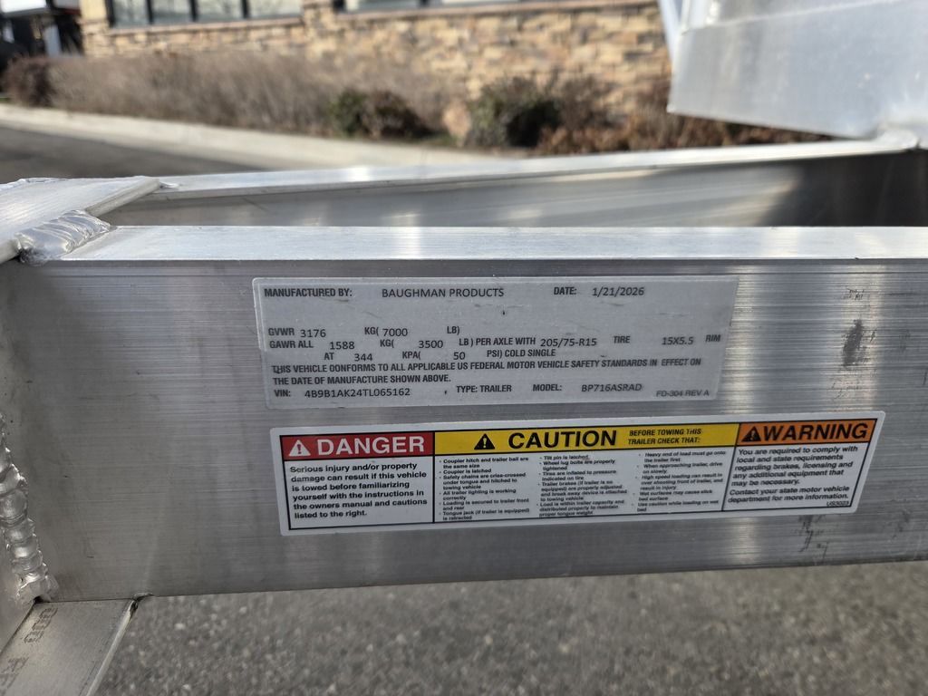 Baughman Aluminum 7x16 Tandem Axle Utility with Side Ramps AND Rear Ramp!! Angled Sides for easy side load and unload!! This is not your average trailer, this Premium Baughman comes with high strength aluminum welds, premium decking with recessed D rings for easy tie down, super light side ramps with built in storage, plus an easy to use pin locking ramp!! Did you know this trailer is light enough for most people to simply hand lift off your trailer ball!!?? Super light and easy to move around with built in tongue jack wheel!!! Recessed Lights, Weather Treated Wood Deck, and More! Call or Text to come pick up this gorgeous trailer!! 7TL065162