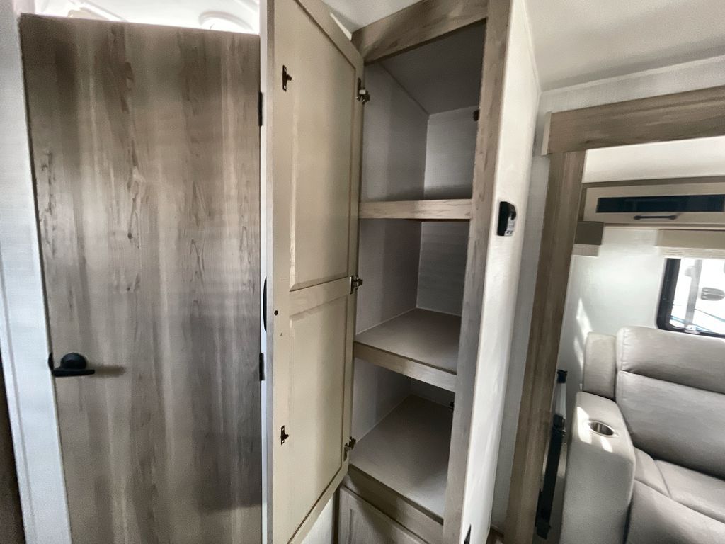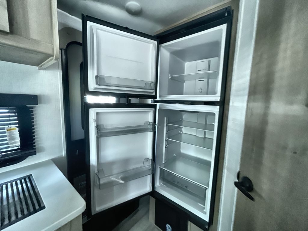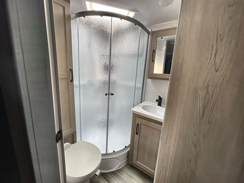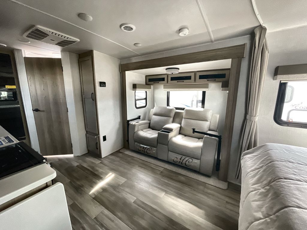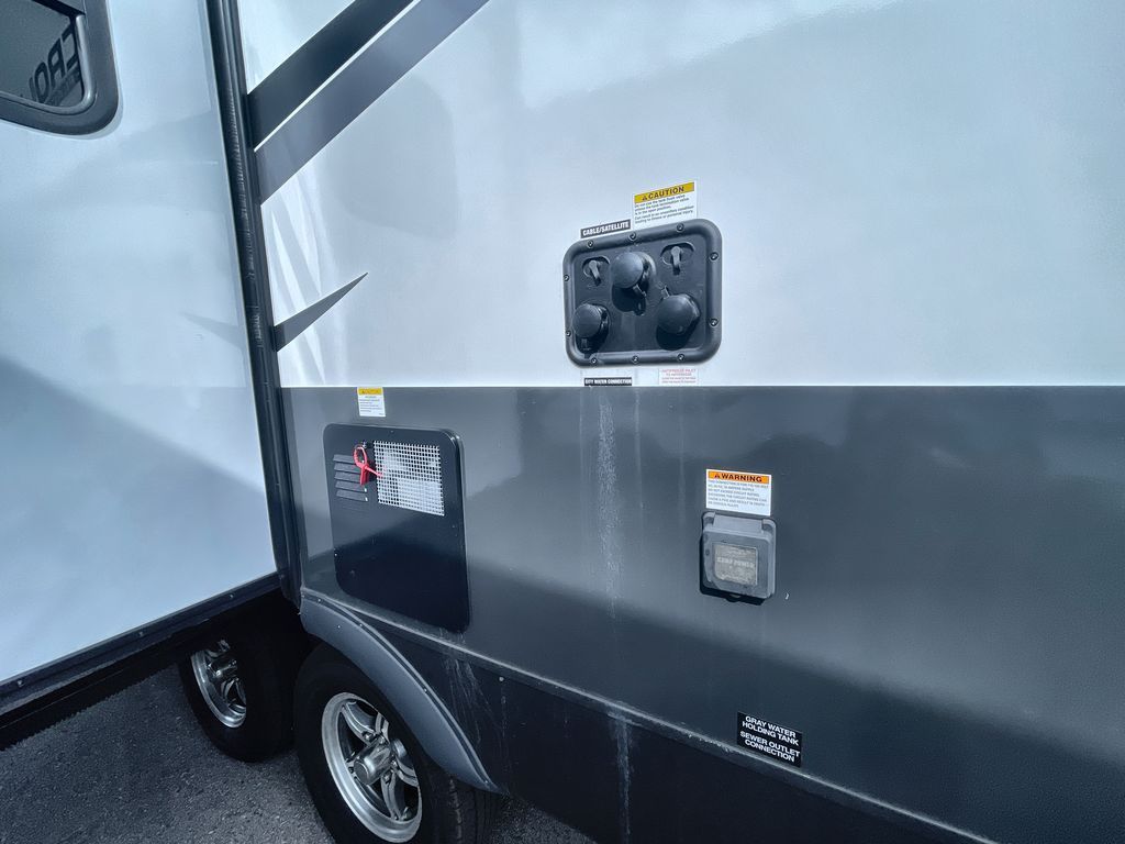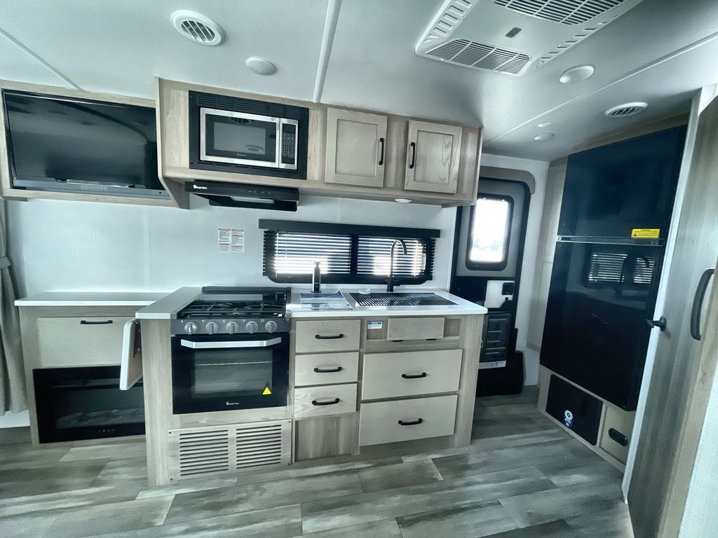 Just the two of you? This may be the perfect camper. Large wall slide for ample floor space with Theater Seating. Queen size bed with underneath storage. Lots of counter space for meal prep. Like new condition.