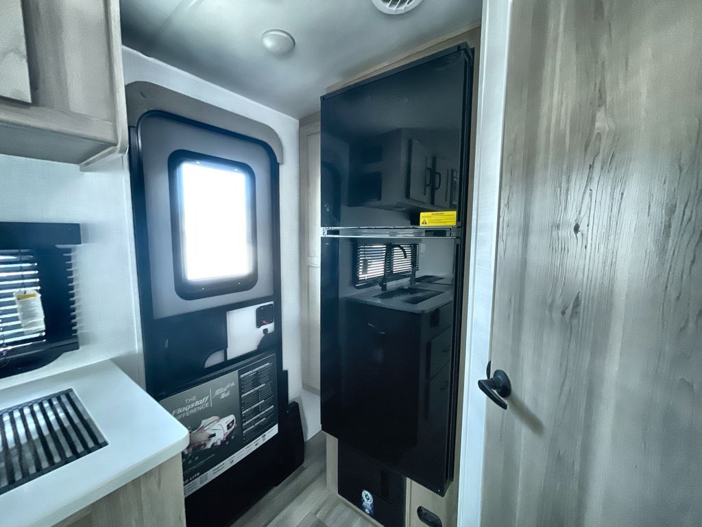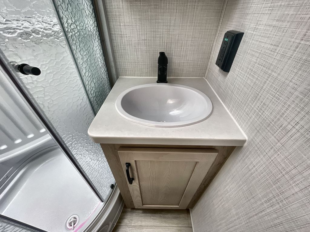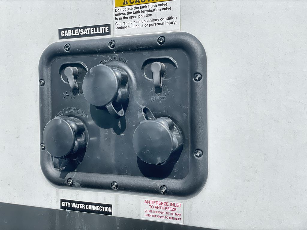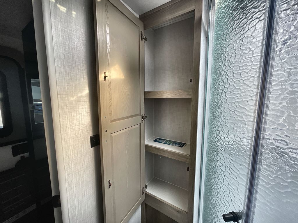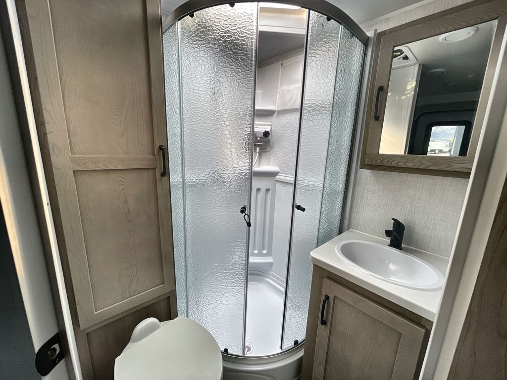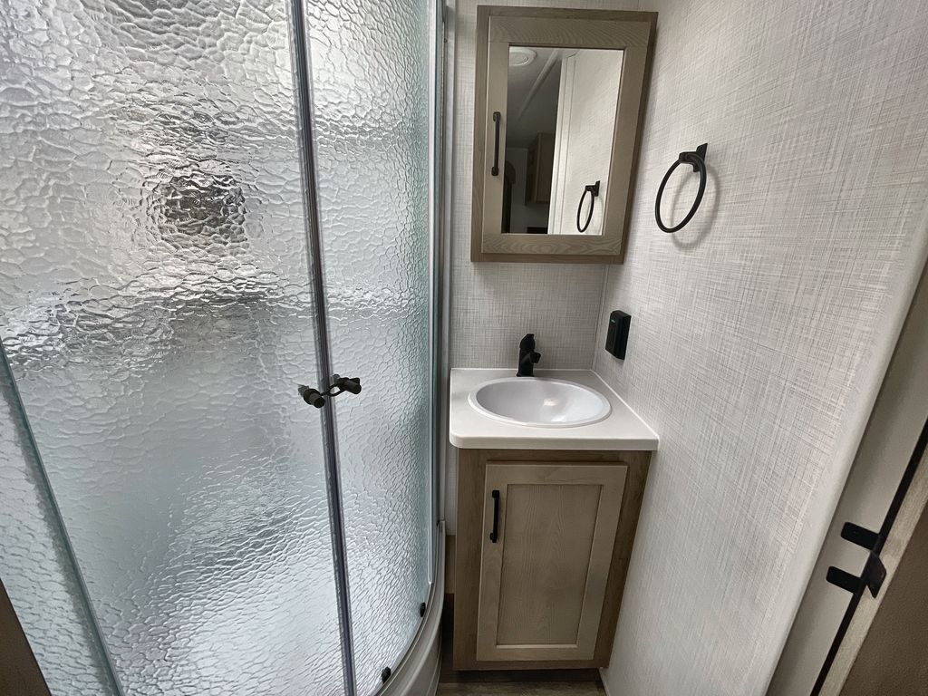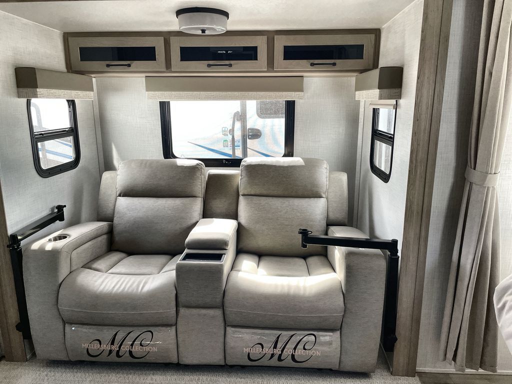Just the two of you? This may be the perfect camper. Large wall slide for ample floor space with Theater Seating. Queen size bed with underneath storage. Lots of counter space for meal prep. Like new condition.