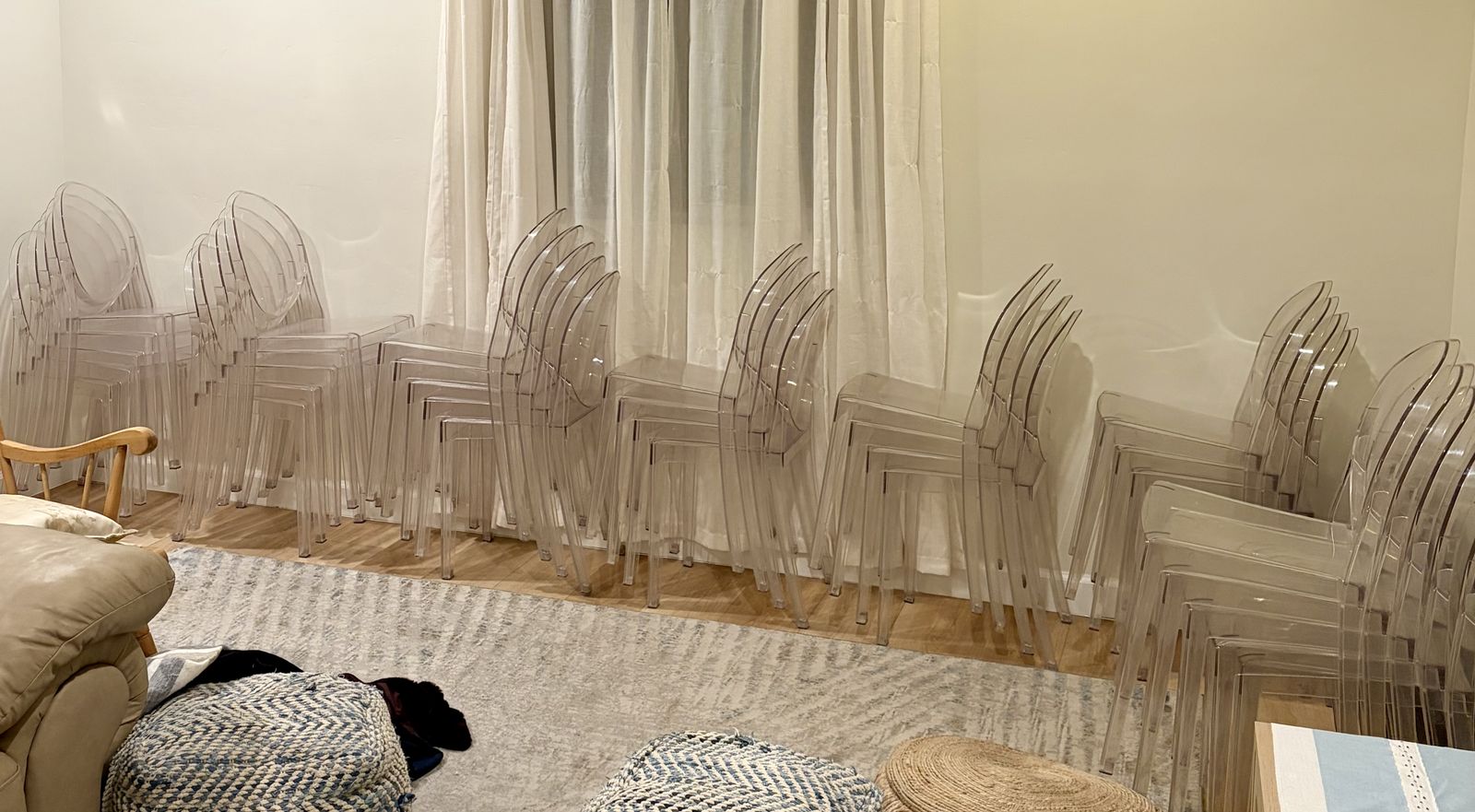 ApplePay$3 each. These are sturdy clear acrylic that can stack 7 high. They can usually all fit into the bed of a truck. Pickup in Saratoga springs.