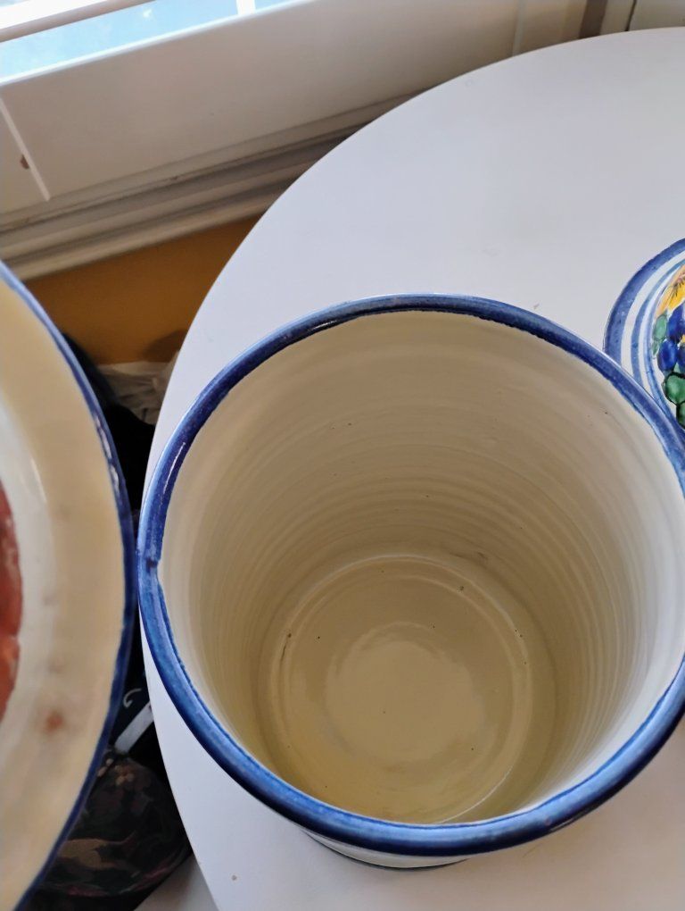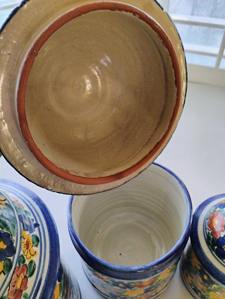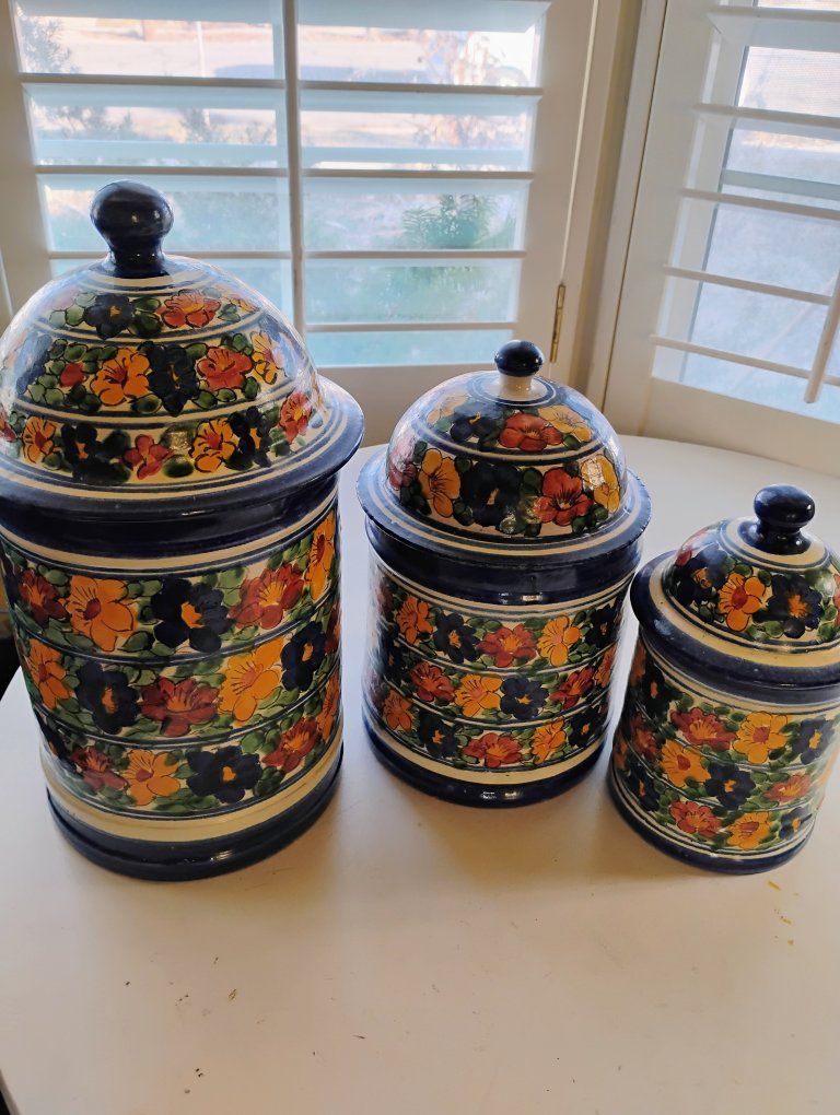 This is a hand-painted kitchen canister. The vibrant, floral patterns are characteristic of traditional Mexican pottery. These canisters are in good used condition. The price is $25 for all 3. We will meet near Foothill village. I don't have venmo, I take cash only. Thanks for looking.