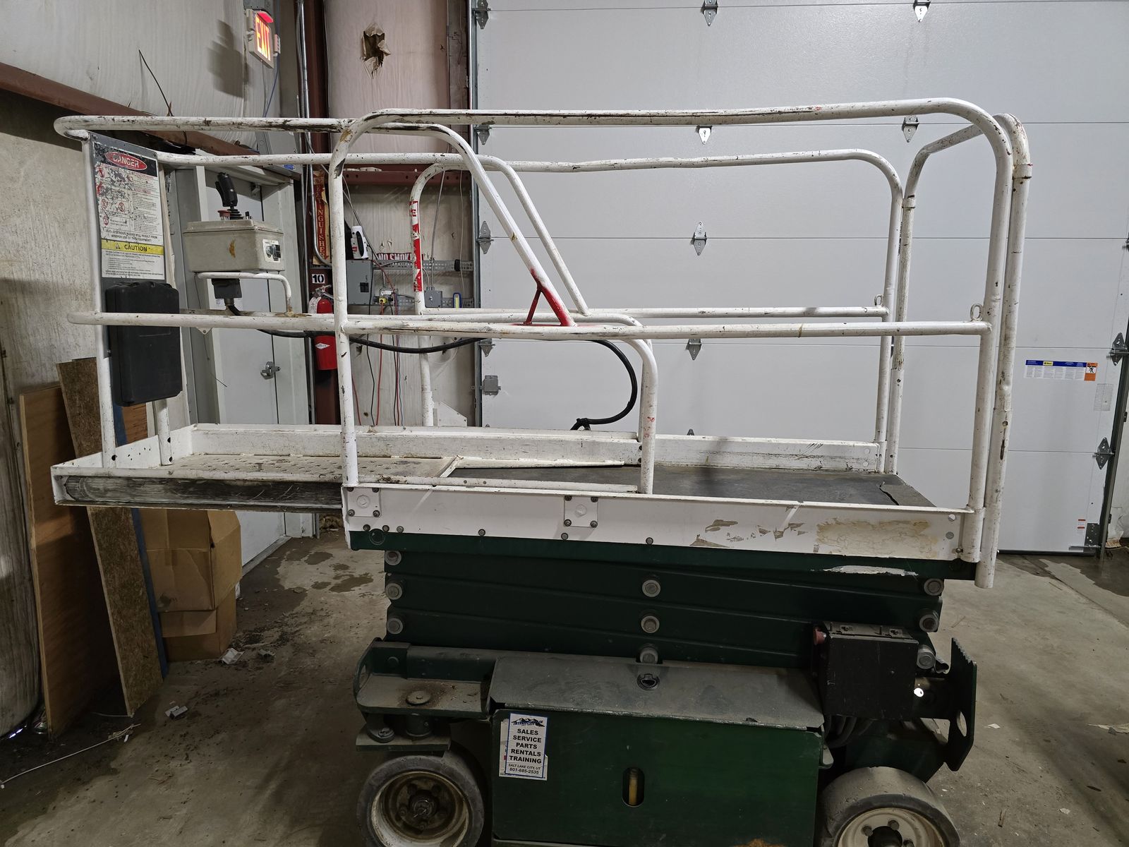 Still works, but has a slight lean when elevated. Unsure on date of manufacture - when I searched online, it suggests from the model # that it could be 1998 - 2001. There is no hour meter, so cannot provide hours used. Due to the restrictions of our new safety program, our company can no longer keep it in rotation. Best suited for someone who needs it for personal use. Will be sold "As-Is" - no warranty. $1,500 obo - cash only