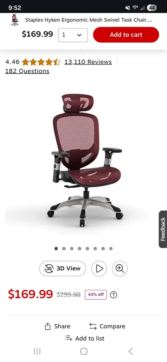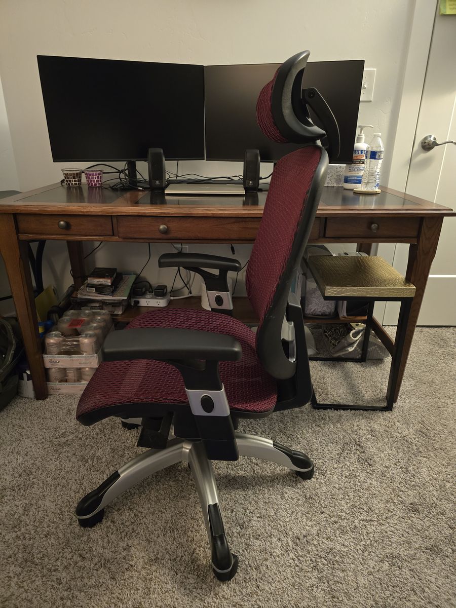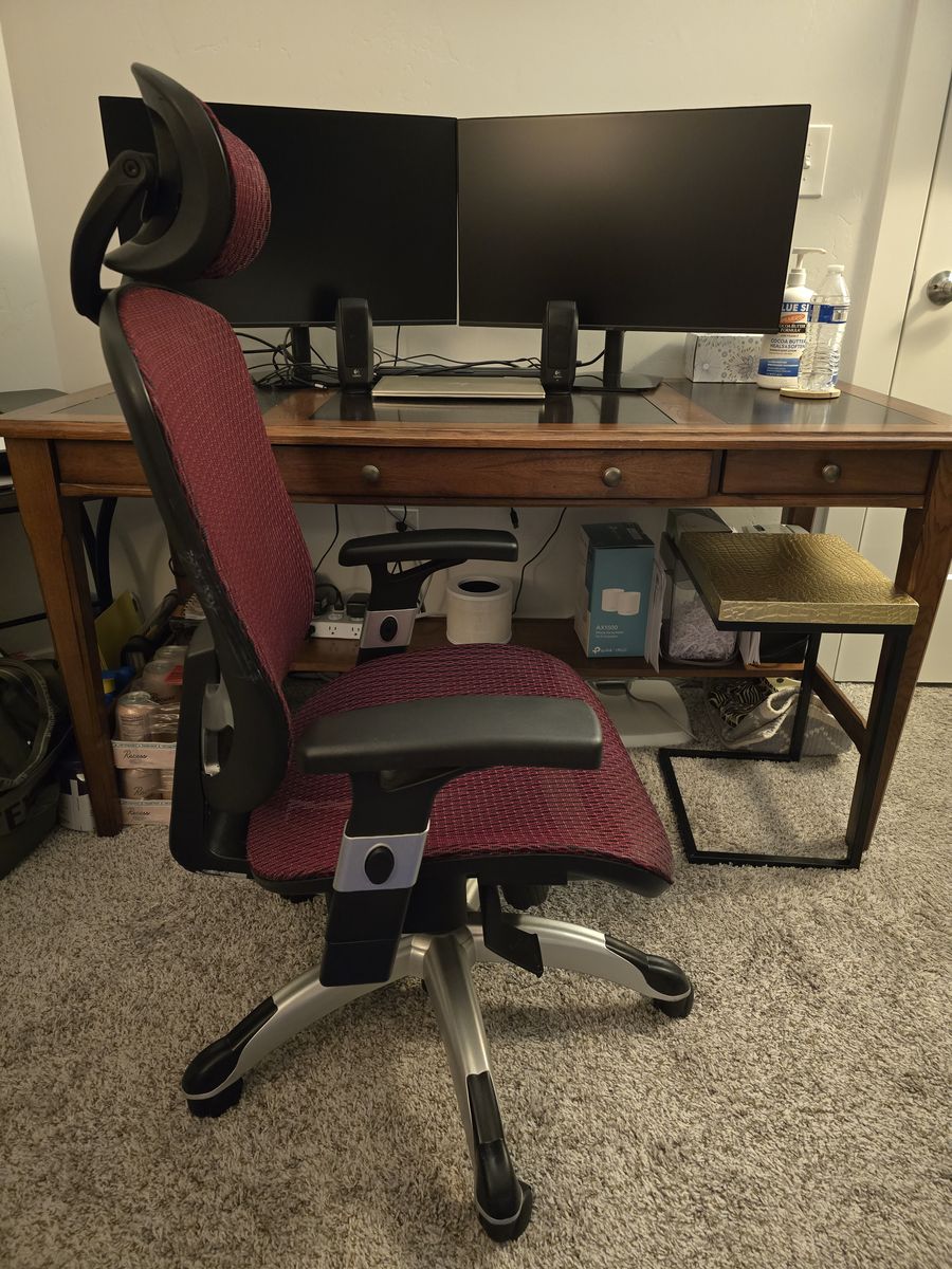 Office chair in great condition. Asking $60. You haul. Cash preferred. Retail $170 - Staples Hyken Ergonomic Mesh Swivel Task Chair, Maroon.