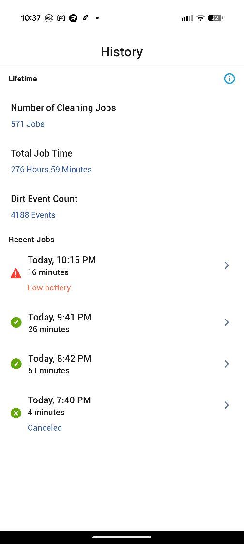 VenmoSelling my Roomba fleet. This one is an E5, tested, fully functional. Has WiFi capability, see pictures for lifetime history. Battery lasts about 95 minutes on one charge. With WiFi, the app allows you to manually start/stop, set a weekly/daily schedule, check status, etc. Has a total lifetime use of 277 hours, which is very low. Asking $80 OBO. no holds, local pickup only. text works best. see my other listings for the others. adding more as I functionally verify them.