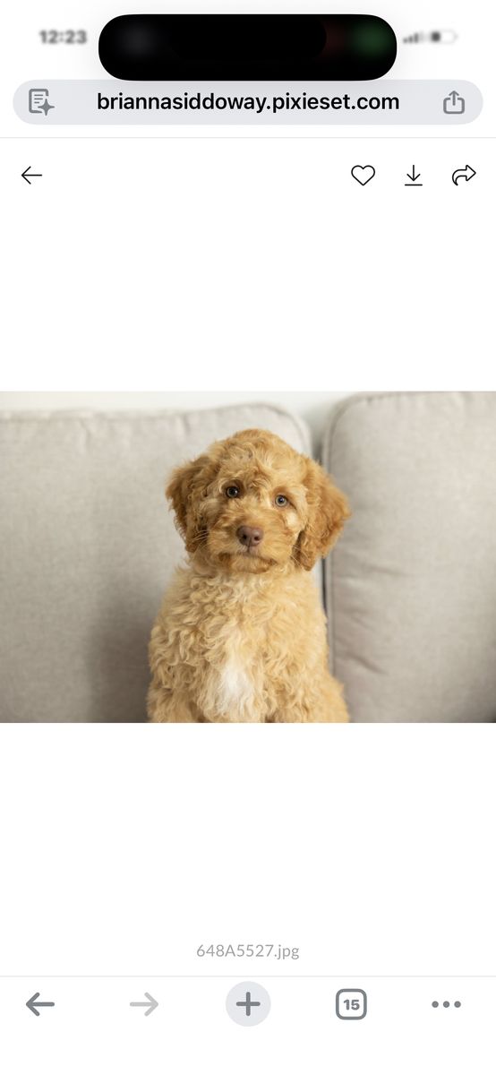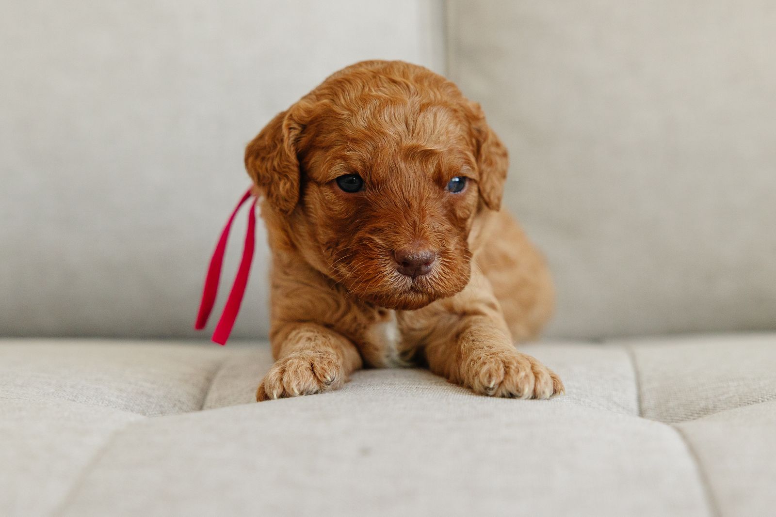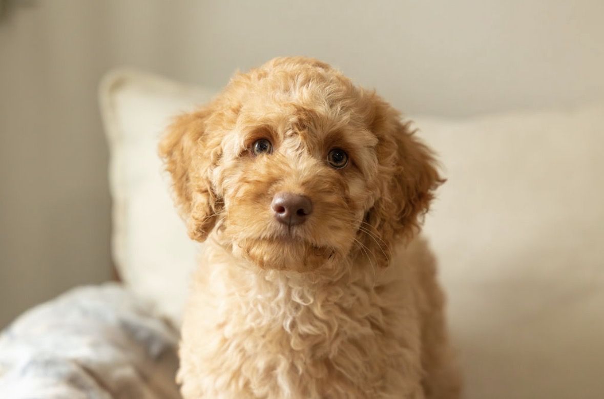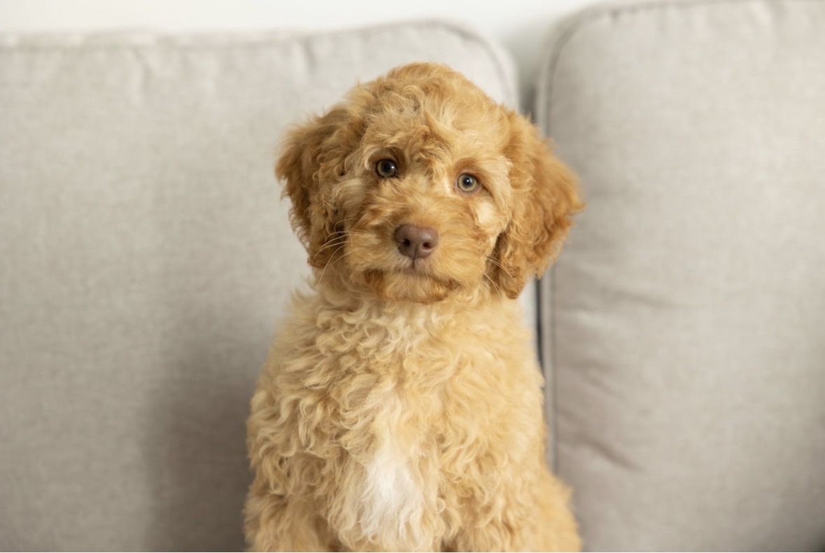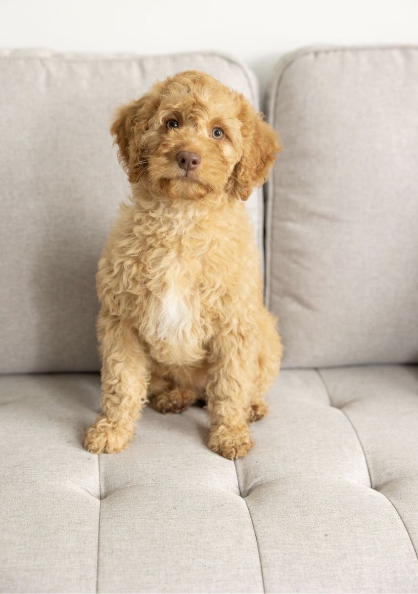 Mom: Daisy – 25 lb F1 Goldendoodle Dad: Archie – 11 lb Mini Poodle Both parents are clear of major genetic health issues.