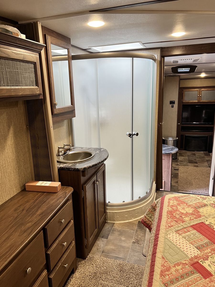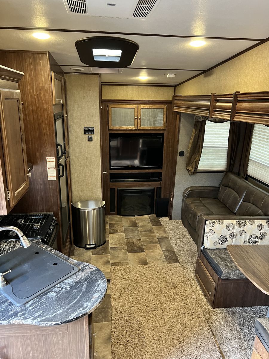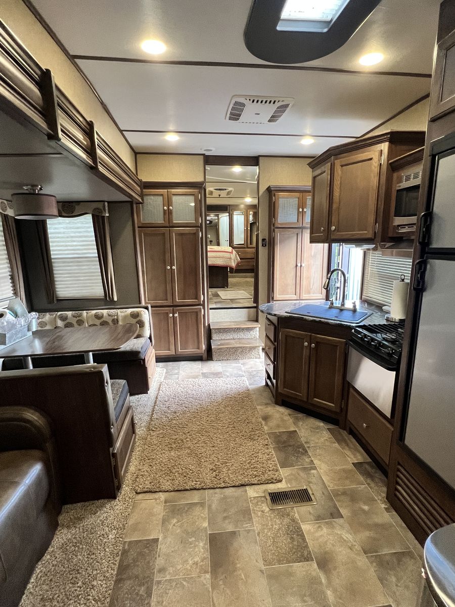 PayPalAuto leveling Auto awning 2 air conditioners Bunk room for kids 2 bathrooms Sleeps 8 Plenty of storage Television with sound bar Fireplace Does have a small hole in the flooring but can easily be covered with a rug Bought it with a flooded but fully restored tile but never had any issues 17,000.00 obo