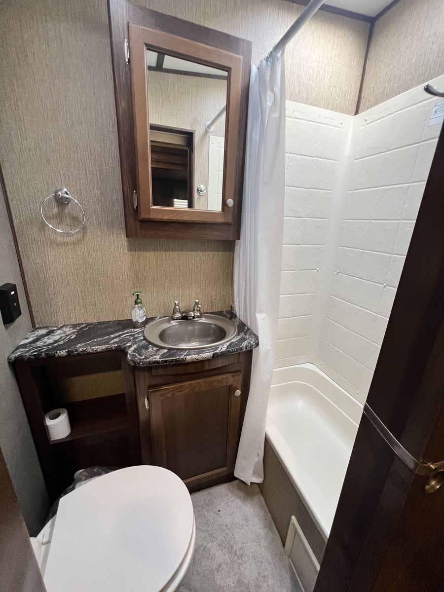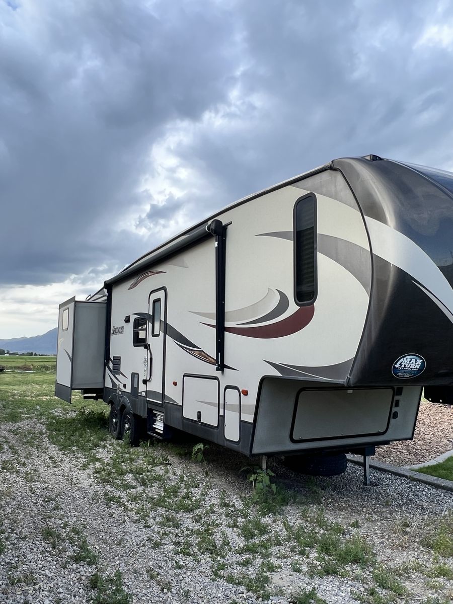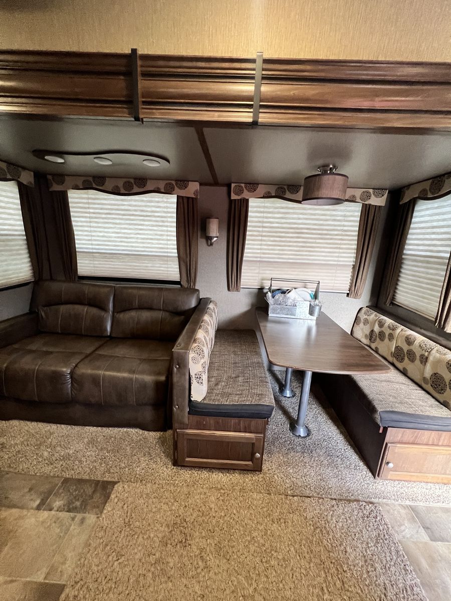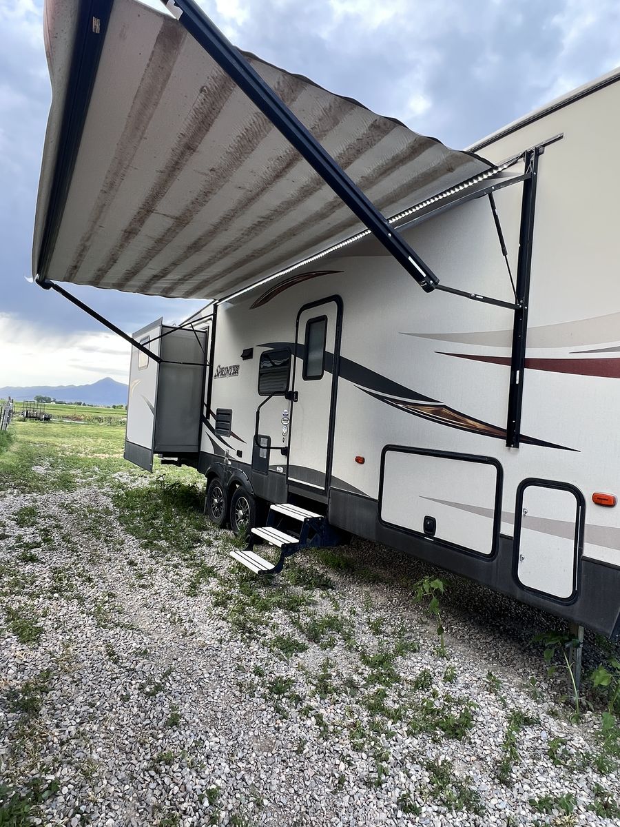 PayPalAuto leveling Auto awning 2 air conditioners Bunk room for kids 2 bathrooms Sleeps 8 Plenty of storage Television with sound bar Fireplace Does have a small hole in the flooring but can easily be covered with a rug Bought it with a flooded but fully restored tile but never had any issues 17,000.00 obo