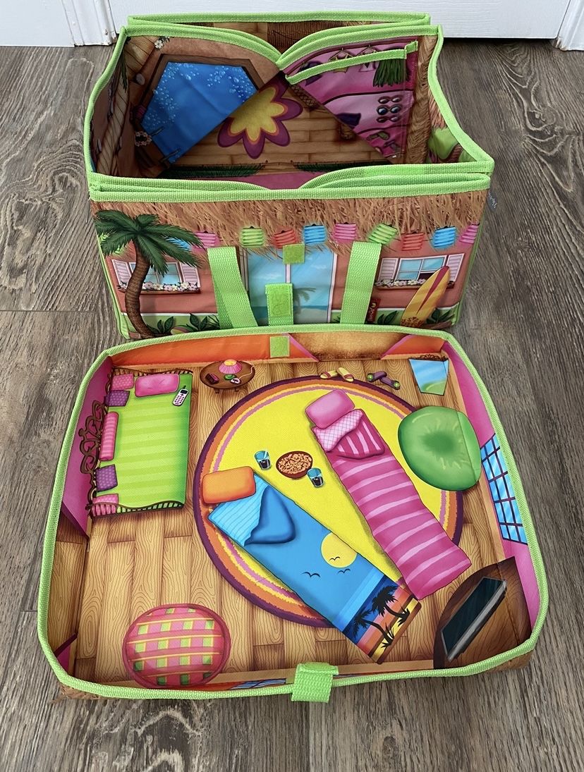 Just Unzip the Carry Storage Bin for a fun day at the beach, when kids are Ready to Play. When finished playing just Store Away, Zip up the Play mat into a Storage Tote / Bin. Storage for Barbie's Dolls / Etc. This is a 2 piece with zippers on all side for storage or play time. Vintage Neat-Oh Zip-bin. Lightly Used at grandparents house...