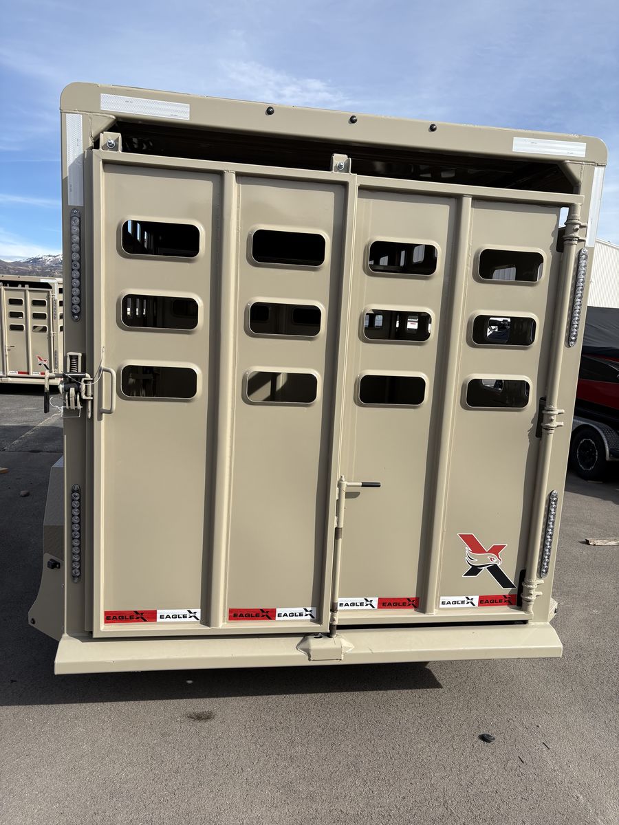 New to Utah! EagleX is a heavy built durable stock trailer with tons of great features. Heavy duty slam latches, 5200# axles, rubber floor that's made for easy clean up, 10 ply tires, 16" rims,rear gate w/slider, LED lights, and more! Come check them out in North Salt Lake or Hurricane. Double B Trailer Sales North Salt Lake 801-298-1433 Hurricane-435-656-5811