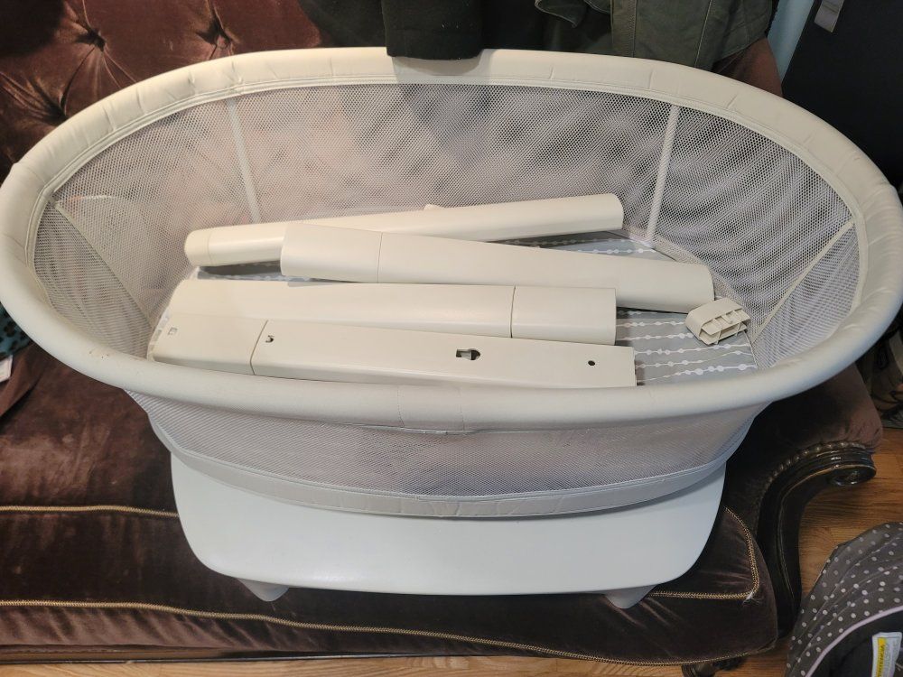 VenmoHave 4moms Mamaroo Bassinet. It automatically rocks with different functions. Can be controlled by the app. Bought last year. Baby grew out of the end of the summer. Comes with an original sheet with two additional waterproof sheets. Want to get out of the house and sell to someone who needs a bassinet at a low price.