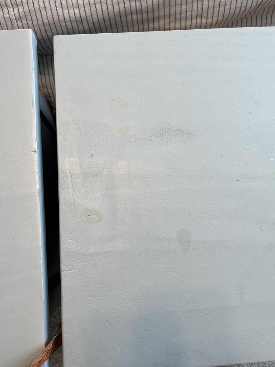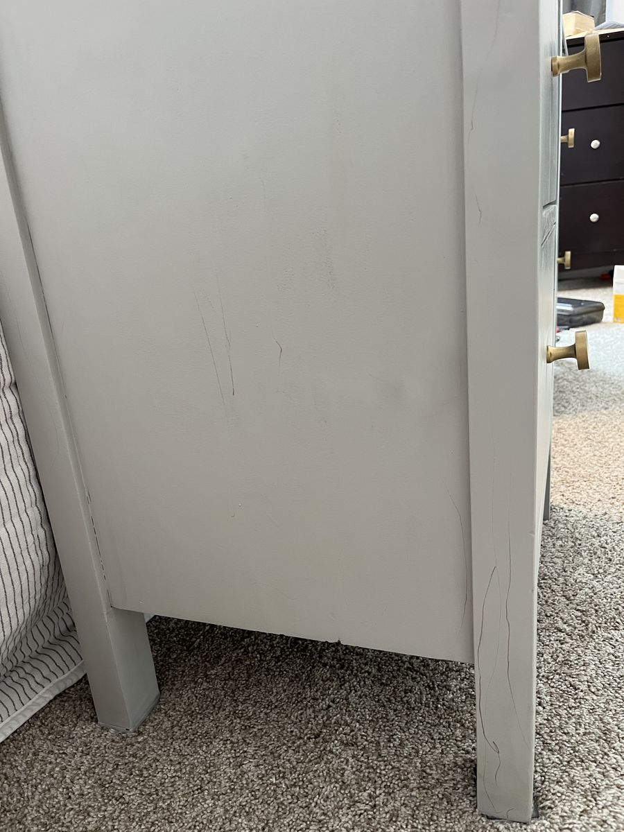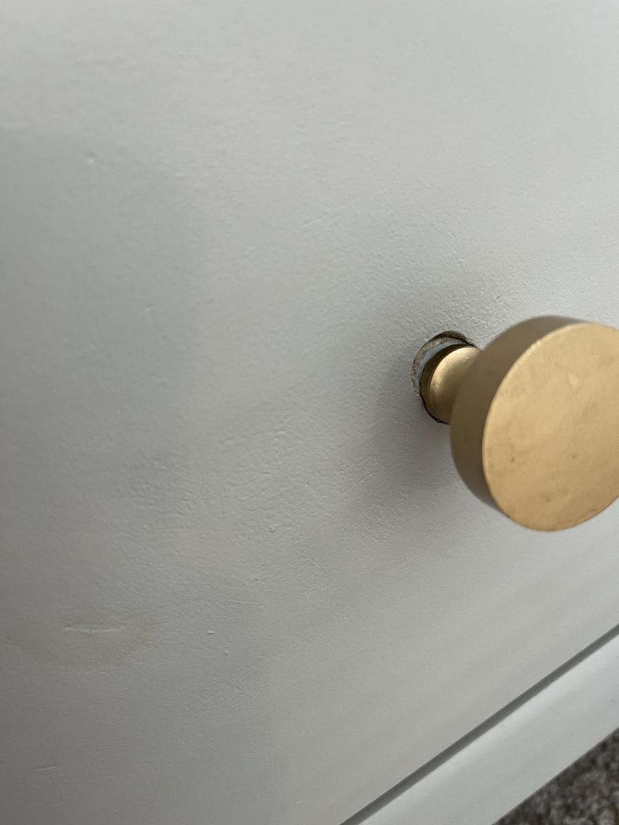 Drawers slide smoothly and everything is structurally sound. They did get some cosmetic damage during a move (see pictures), so they could use a little TLC or would make a great refinishing project. They’re also perfectly usable as-is. Only selling because we upgraded to larger nightstands.