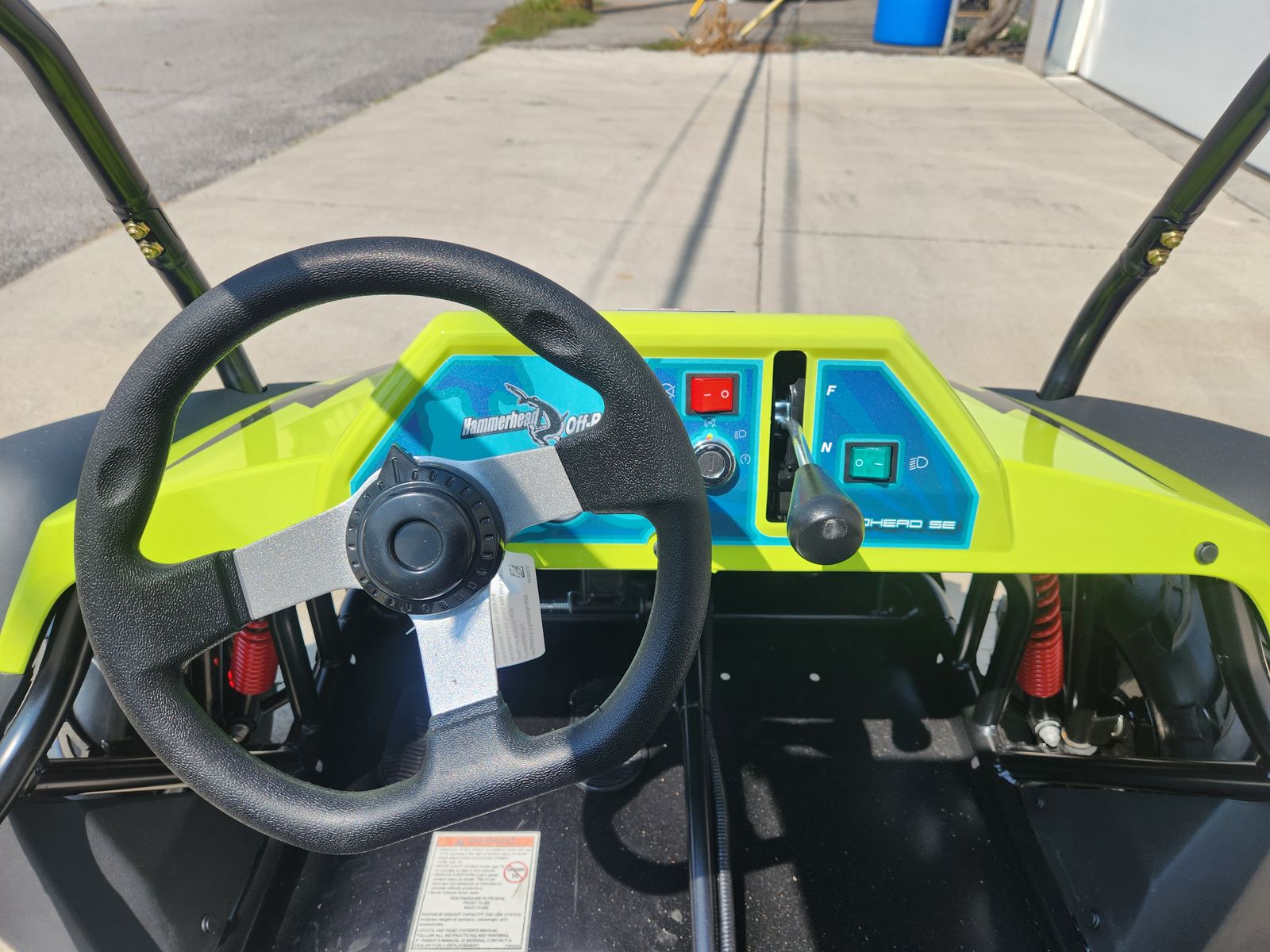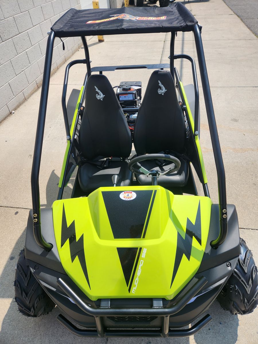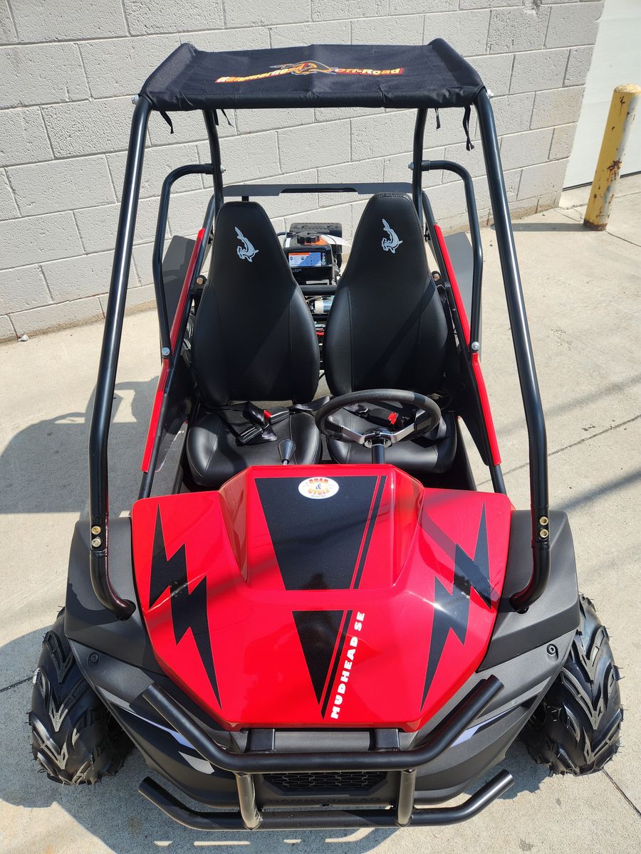 The Hammerhead Mudhead-SE is the newest addition to the youth segment. Designed to be the most reliable and stylish youth go-kart available on the market, the SE will be your kid’s dream come true. Available in six colors, the Mudhead-SE comes equipped with reverse and a 208cc (6.5 HP) LCT electric-start engine utilizing a manual choke for all-weather starting. Other standard features include Heavy Duty Roll cage, LED headlights, throttle limiter and an upgraded plastic body with steel bumper.