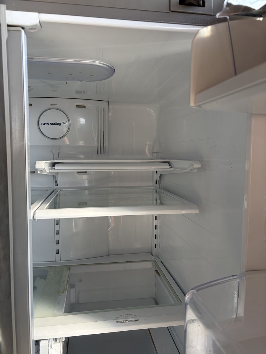 We used stainless cleaner on the outside and got most of the tape smudging off. I’ll update the photo when I get time. I’ll also add a picture of the freezer section.
