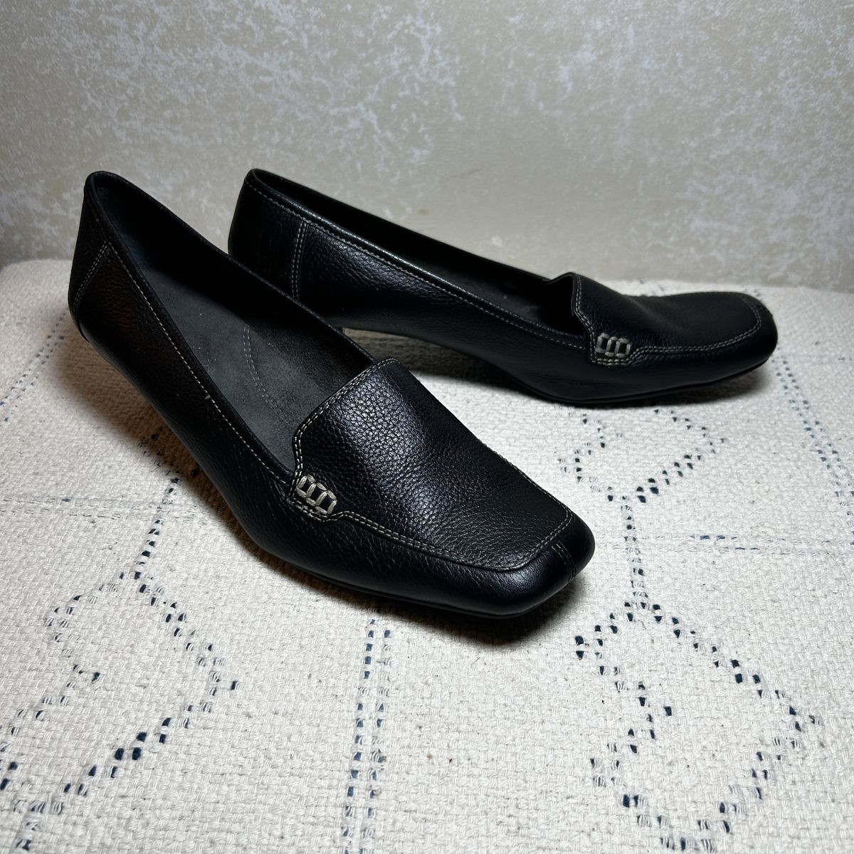 Aerosoles versatile pumps in Dark Navy pebbled Leather. Low 1.5” heels made of stylish acrylic. Comfortable slip-on shoes with square toe and contrasting stitching is great for many occasions from casual to formal and everyday wear. USA Women’s Size 8.5. EUR Size 6.5. No rips, tears, stains or defects. Smoke free. Photographs are of the exact shoes you are purchasing. Delivery available to a convenient location when in your area for $5.