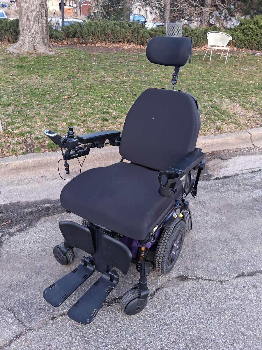 This wheelchair is 5 months old it is state of the art technology. It reclines and the legs lift. It has a top speed of 6.2 mph. It will go 12 miles on a single charge. It has bright headlights and bright tail lights. It includes a plug-in so you can charge your cell phone while you're out and about. The cost of this chair was $18,000 I'm only asking $9500. This is a cry for help and is the reason I must sell this sure immediately. I will include two rolls of Lights. They're flexible multicolored they include an app which you download to your phone and you control which colors you would like them to display. You can attach portions of these lights to your chair and make it as beautiful as you would like. These lights are free of charge. I am willing to talk about a lower price. I have the title. The owners manual and all paperwork. This wheelchair is also equipped with 2 batteries.
