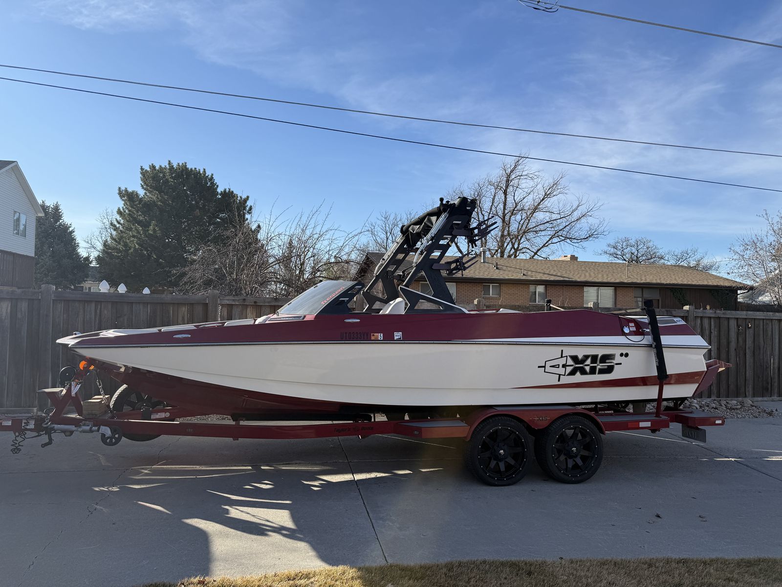 2017 Axis is the surfers dream boat! Look at the space and feel the power. Too many extras to list but here are some of the features. Brand new tires on trailer. Maybe 50 miles on the tires. 4 tires and spare attached to trailer. Trailer has tongue off set as tongue folds together. Lots and lots of storage. 550 Monsoon turbo charged motor. Ballast tanks/bags at rear and center. Front has been piped for bags if you want to add them. Awesome speakers and sub wo make chillin and surfing so fun! Boat capacity is 17 people. Power enough for large 17 people! Trailer has new carpet on rails. Swim deck has ladder pull down. Just replaced the solenoid for surf gate on starboard side. This is an amazing boat and we have loved the power. Take advantage of the price! NO trades. 469 hours