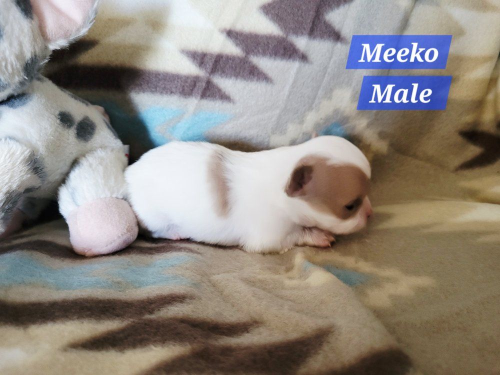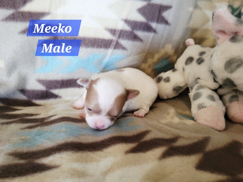 ZelleI have 4 Adorable male chihuahua puppies looking for loving homes. They will come with full Akc registration. They will have a vet exam and there first vaccine before they leave there home. They were born on February 16th and will be ready to go by April 16th. They are going to be pretty tiny. The mom weighs 4.5 pounds and the dad weighs 3 pounds. They are all going to be long haired with beautiful apple heads. check out our Facebook book page Outlander Blues for more pictures.