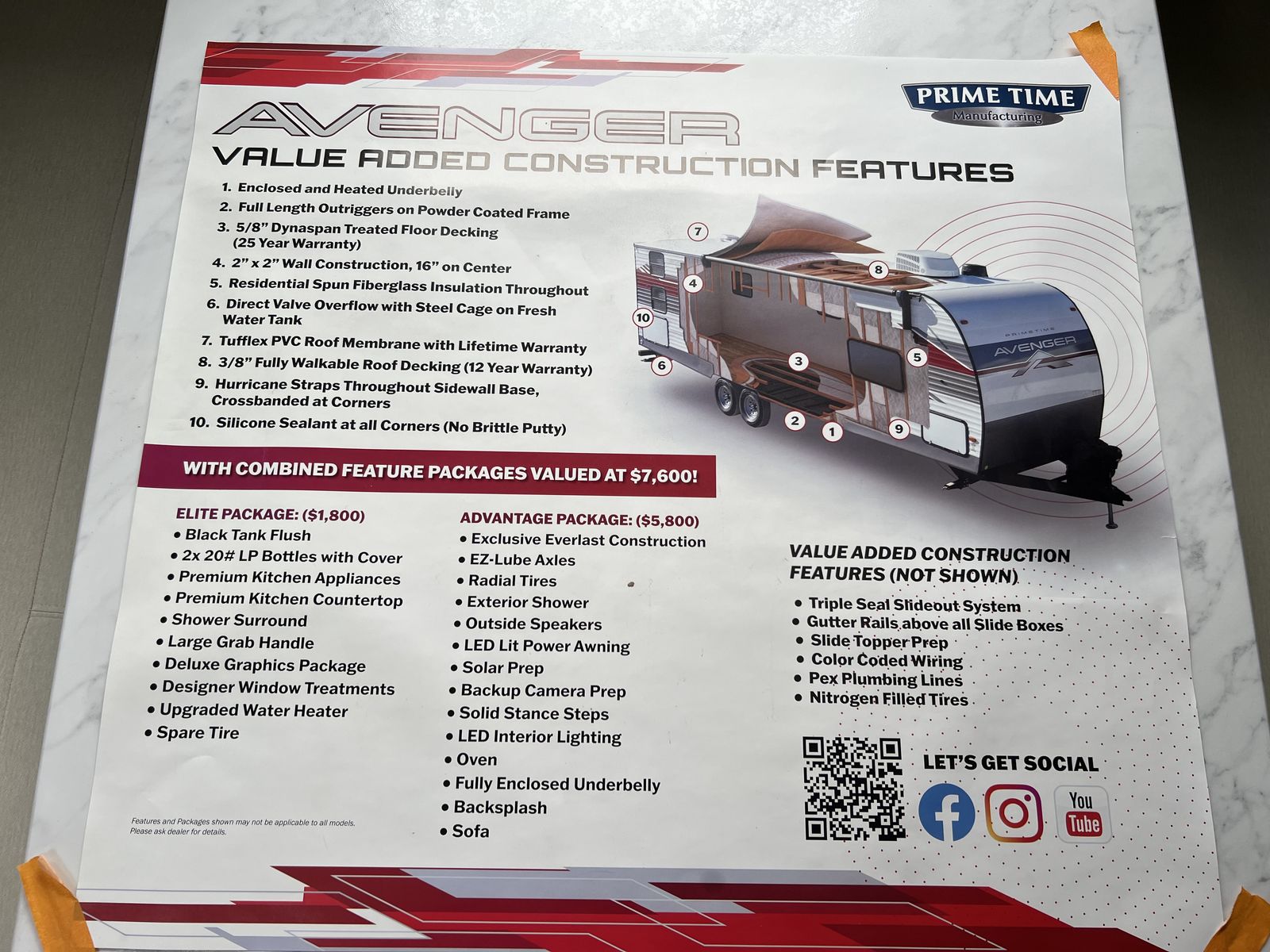 This Avenger has a power tongue jack, spare tire, sleeps 4 and keeps it super simple with no slide out. 1 YEAR WARRANTY INCLUDED.